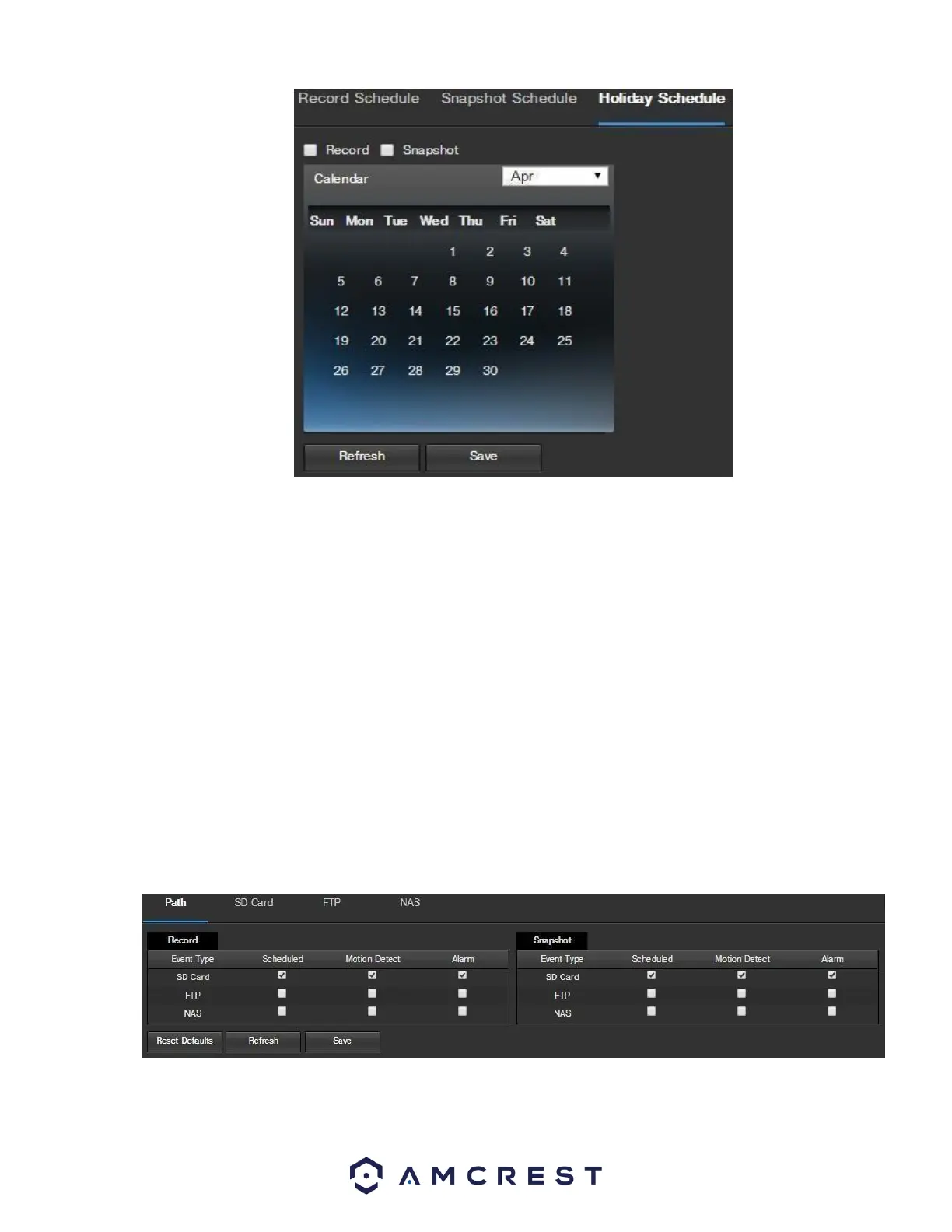 it can be customized to stop recording or snapshots for that day by using the Record and Snapshot