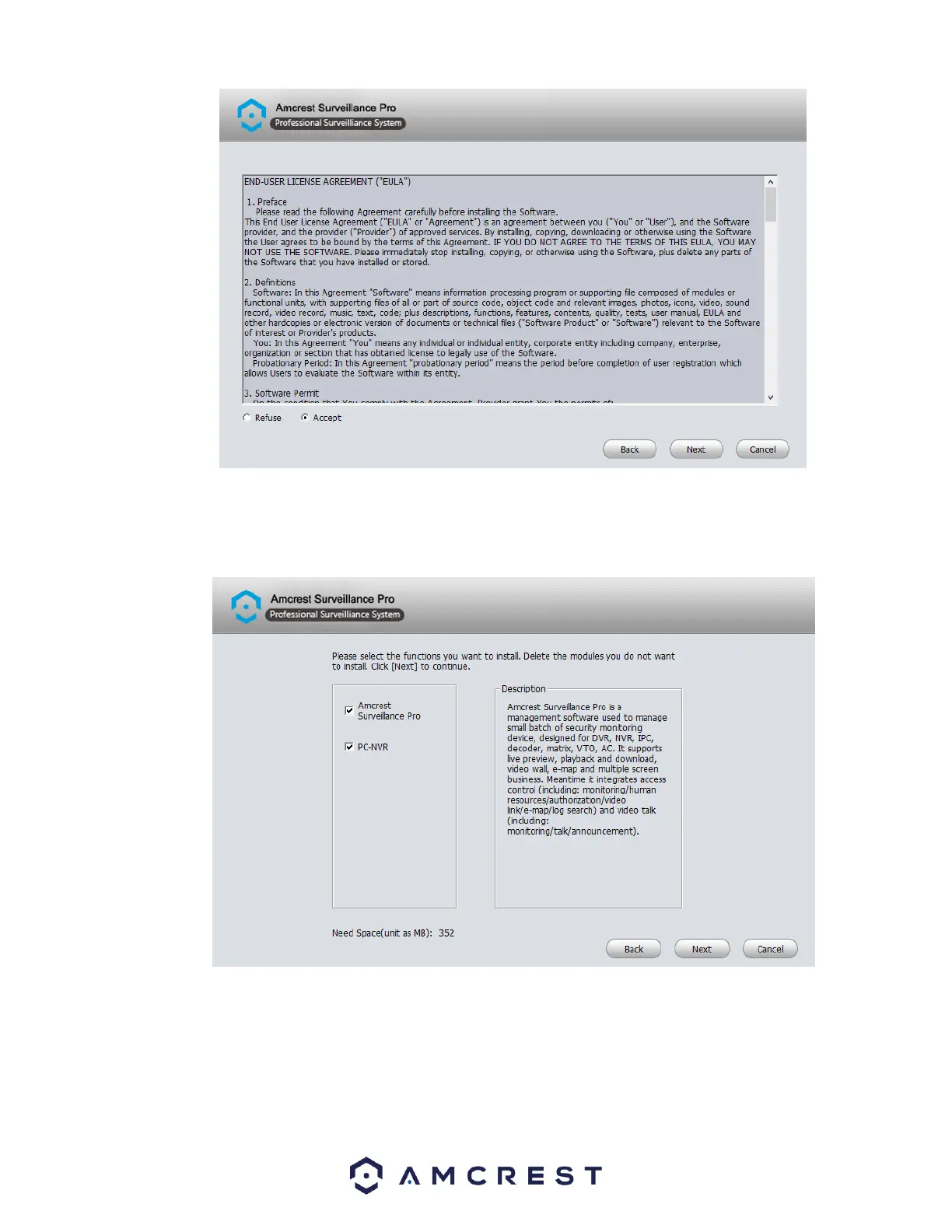 Select the functions that you want to install with the software. You can choose to bundle the PC-NVR function with the software.