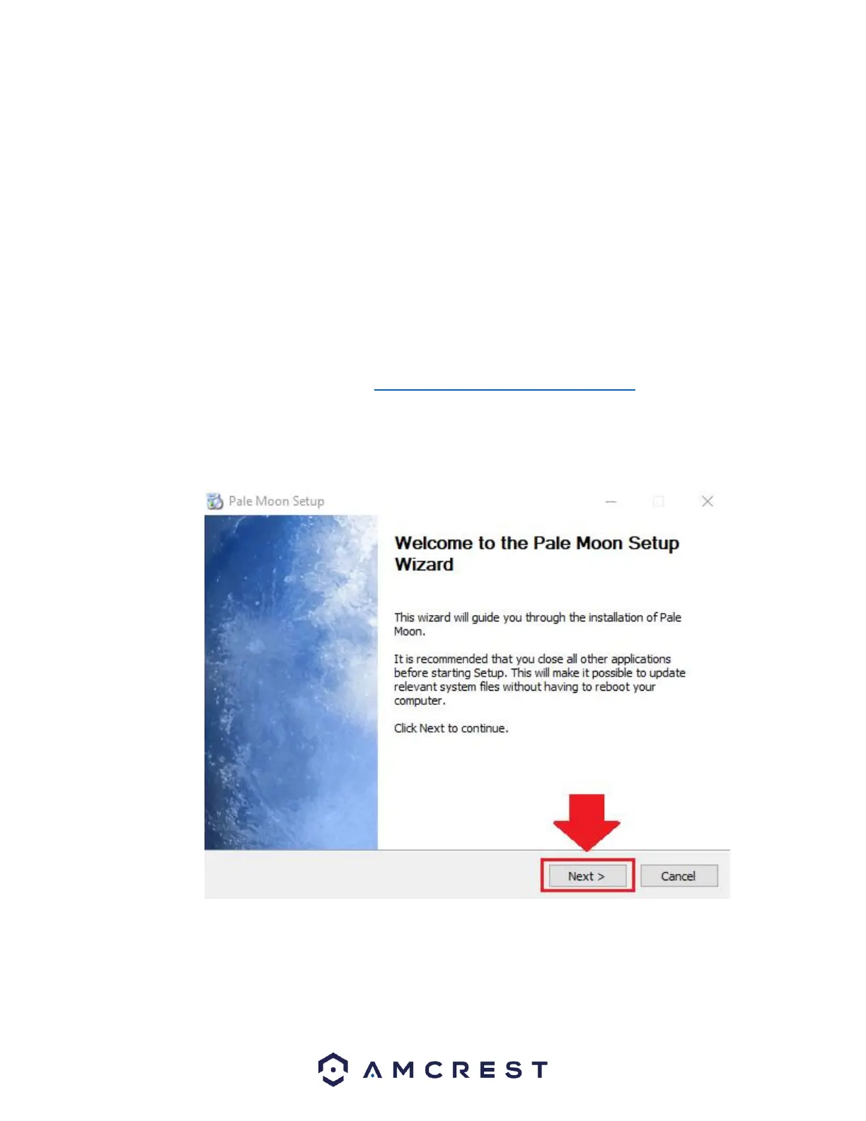 Click on the downloaded Pale Moon Setup file and run the setup wizard. For purposes of these instructions we will be using