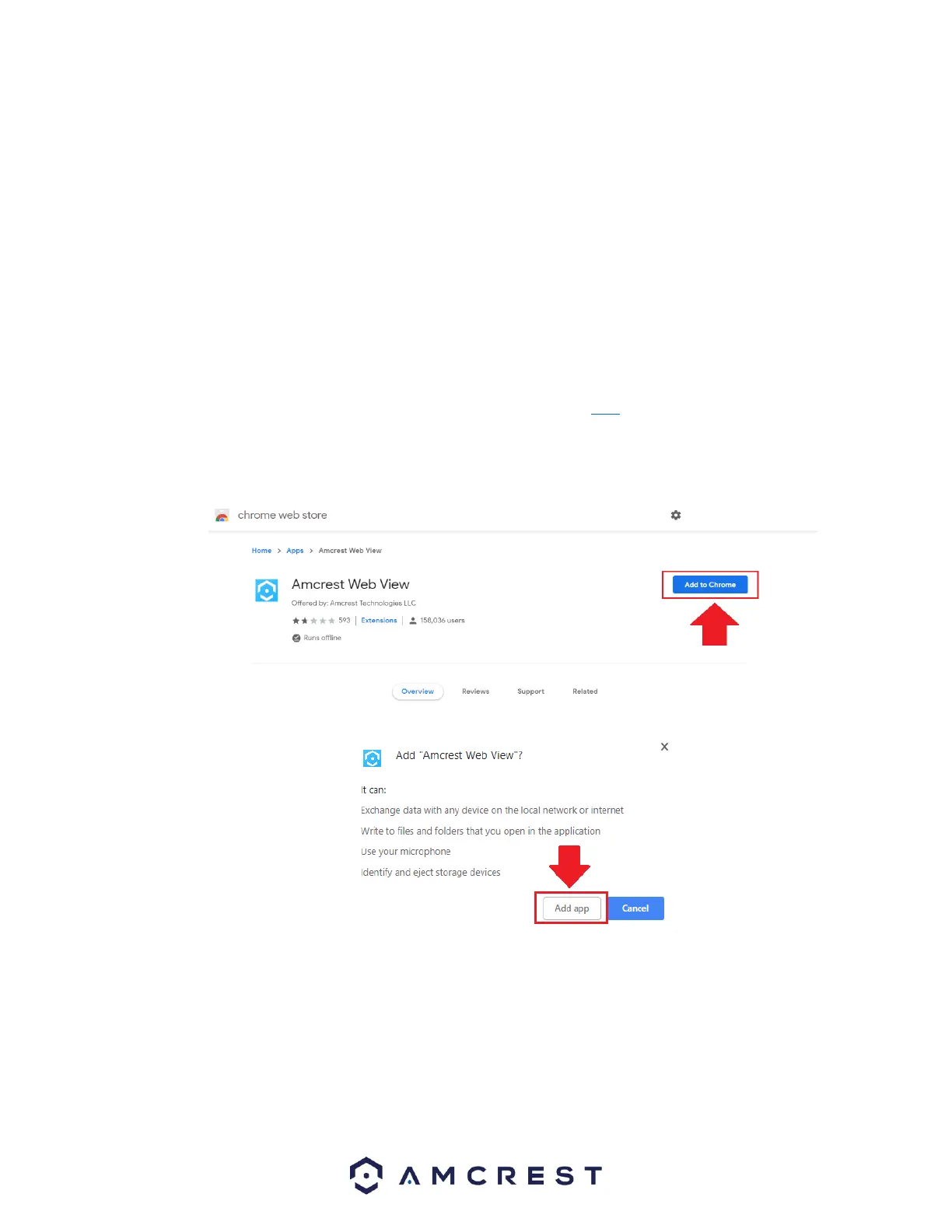 Chrome web store. To add the Amcrest Web View app to your browser, click here.