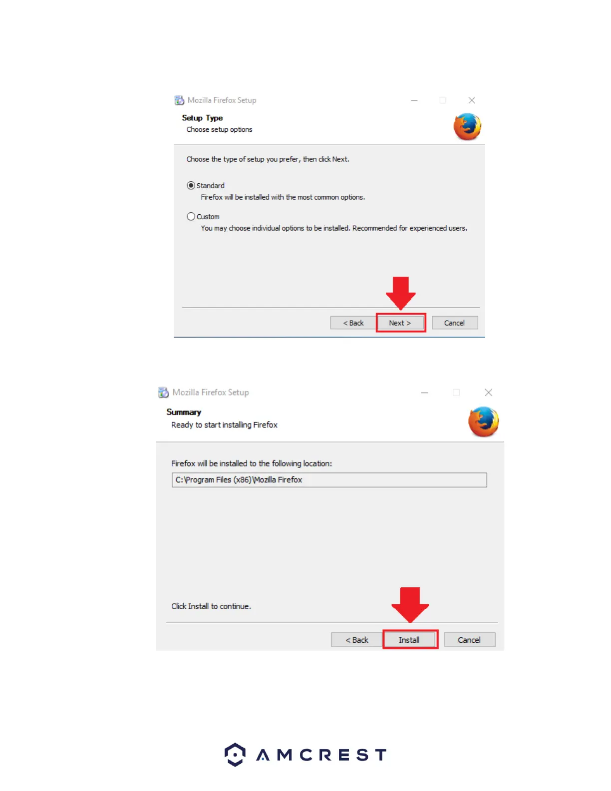 Choose the type of setup you prefer. There are two types of setup, Standard and Custom. In this case, it is recommended to run