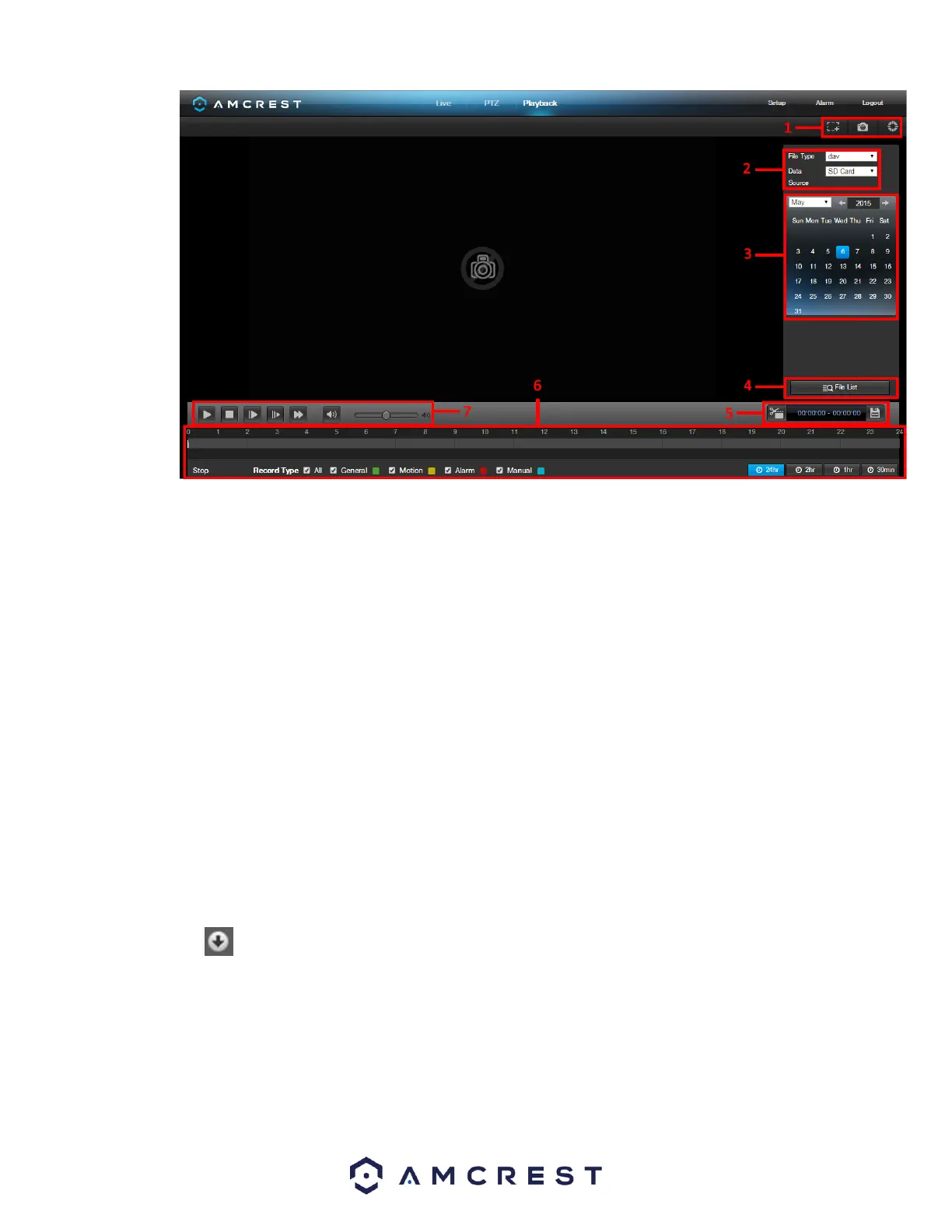 4. File List: This button opens a file list of all recorded video for a specific date range. From here, the
