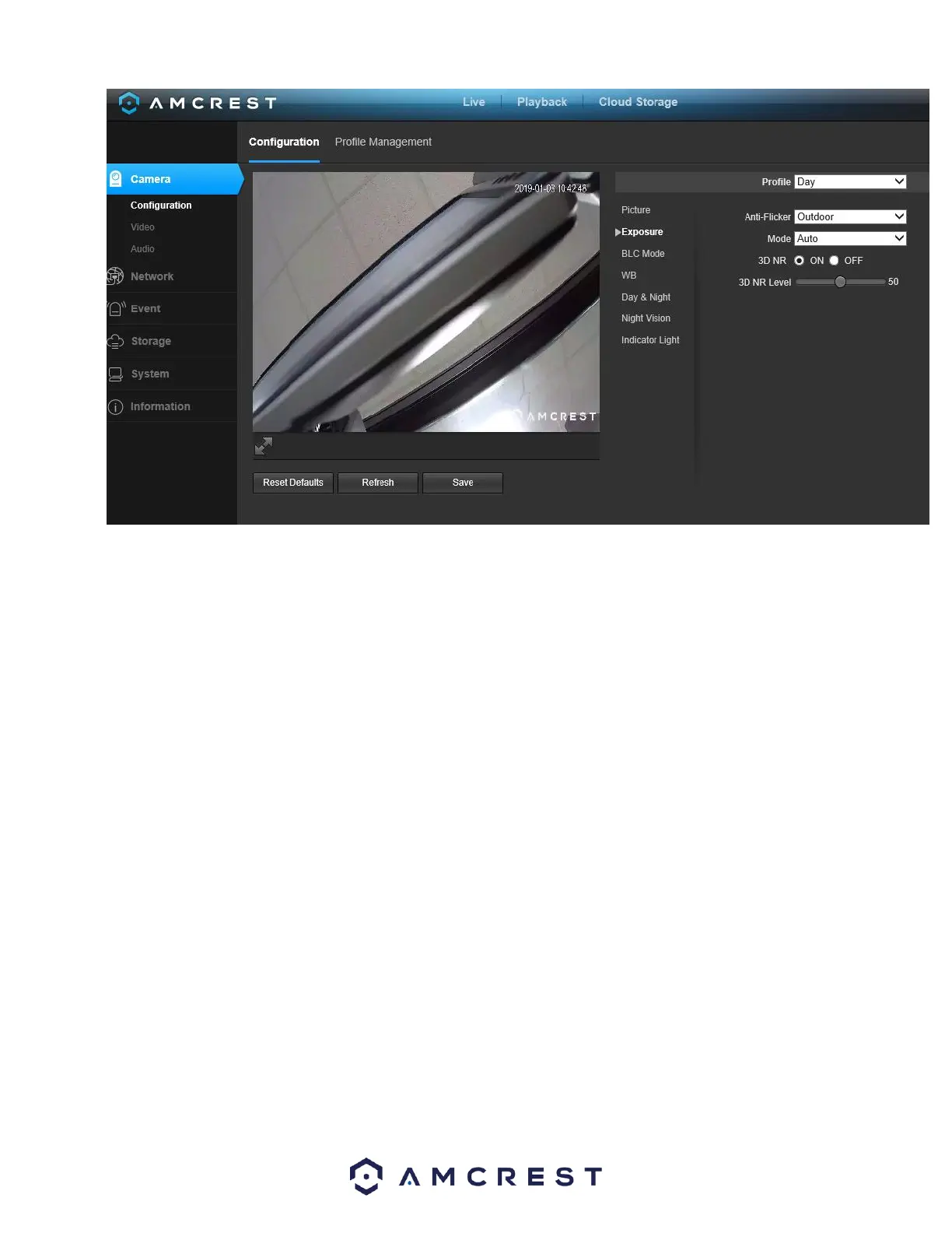 • 3D NR: This radio button allows the user to turn the 3D Noise Reduction feature on or off.