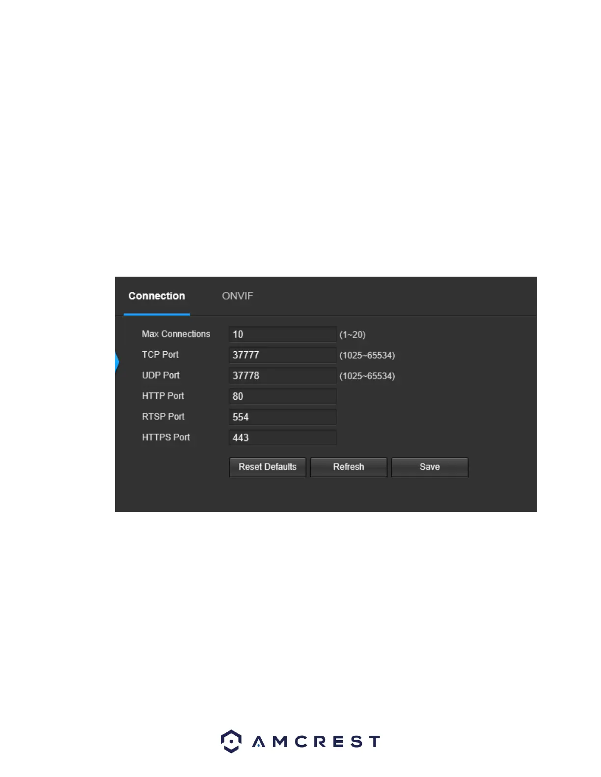 • Max Connections: This field allows the user to specify the maximum number of users that can be connected to the camera