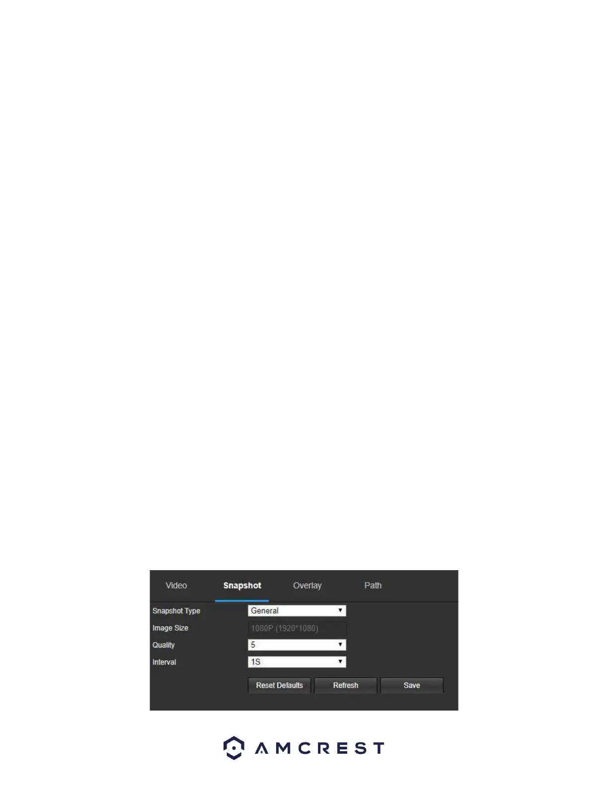 Below is a screenshot that shows the Snapshot tab in the Video menu item: