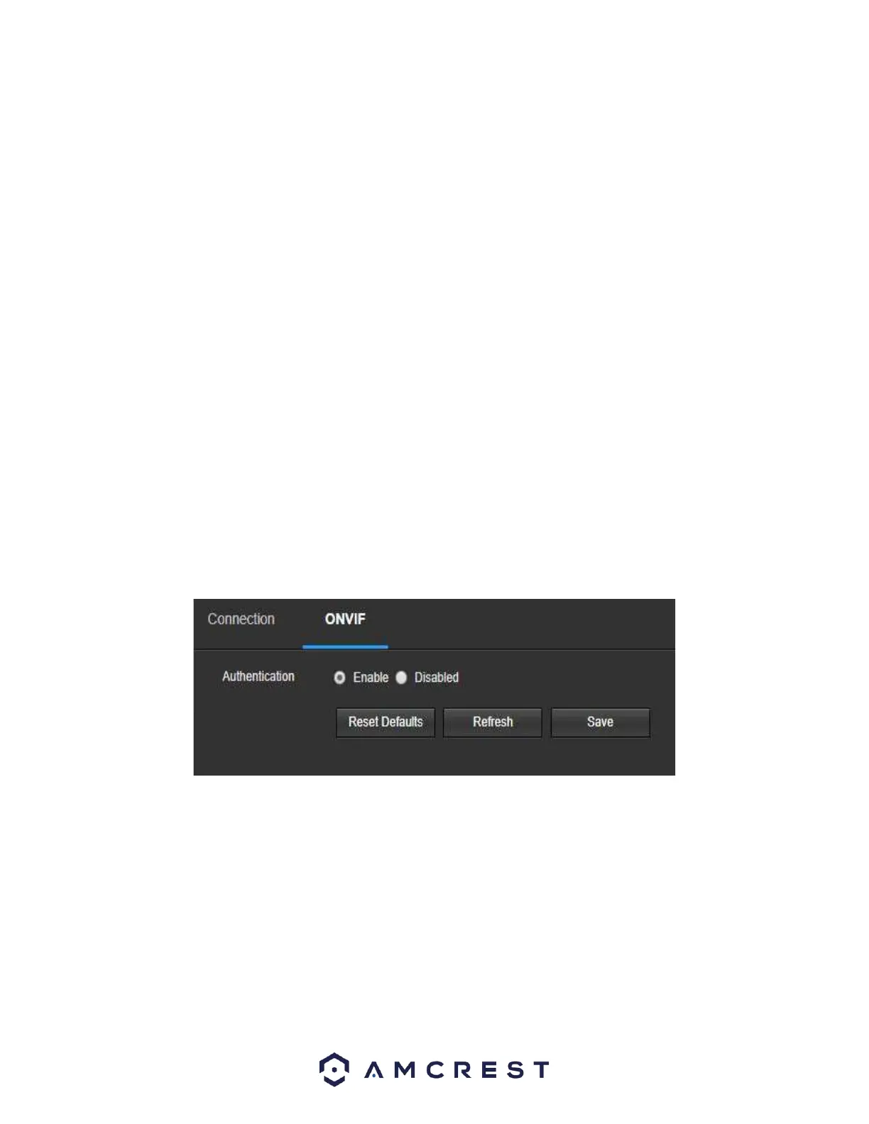 The ONVIF tab is where users can configure authentication via the ONVIF standard. Below is a screenshot of the