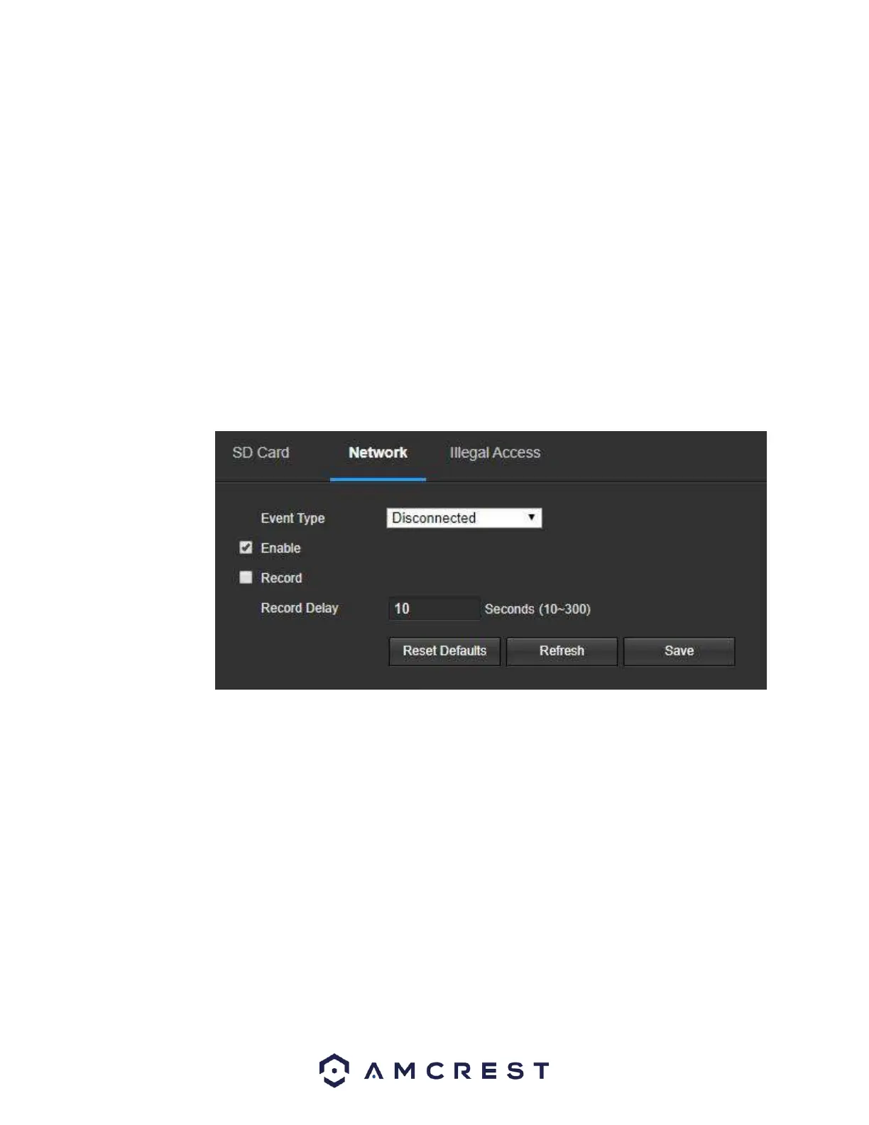 • Record: This checkbox allows the user to enable the camera to record video when a network abnormality is