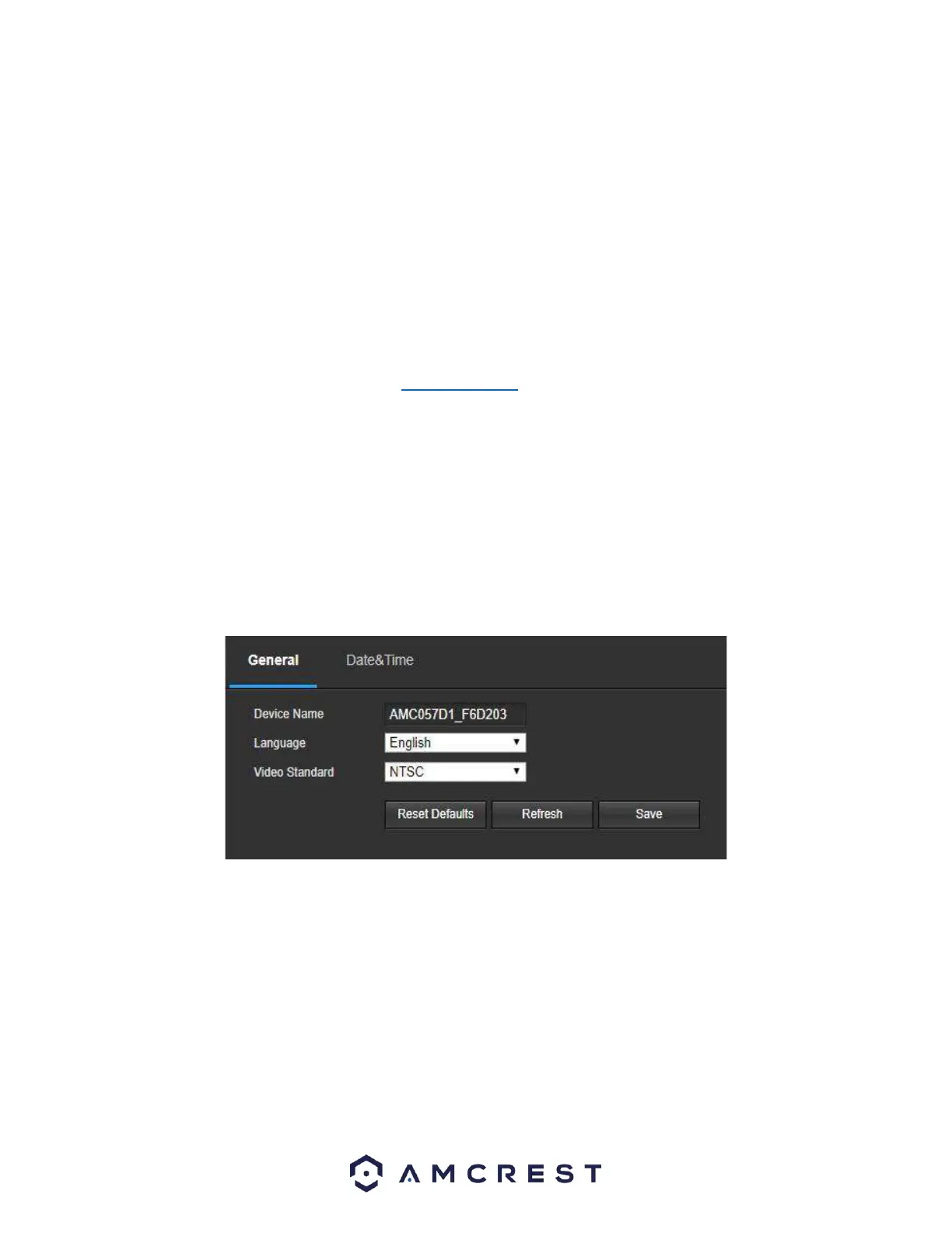 This tab is where the user can configure some basic camera settings. Below is a screenshot of the General tab: