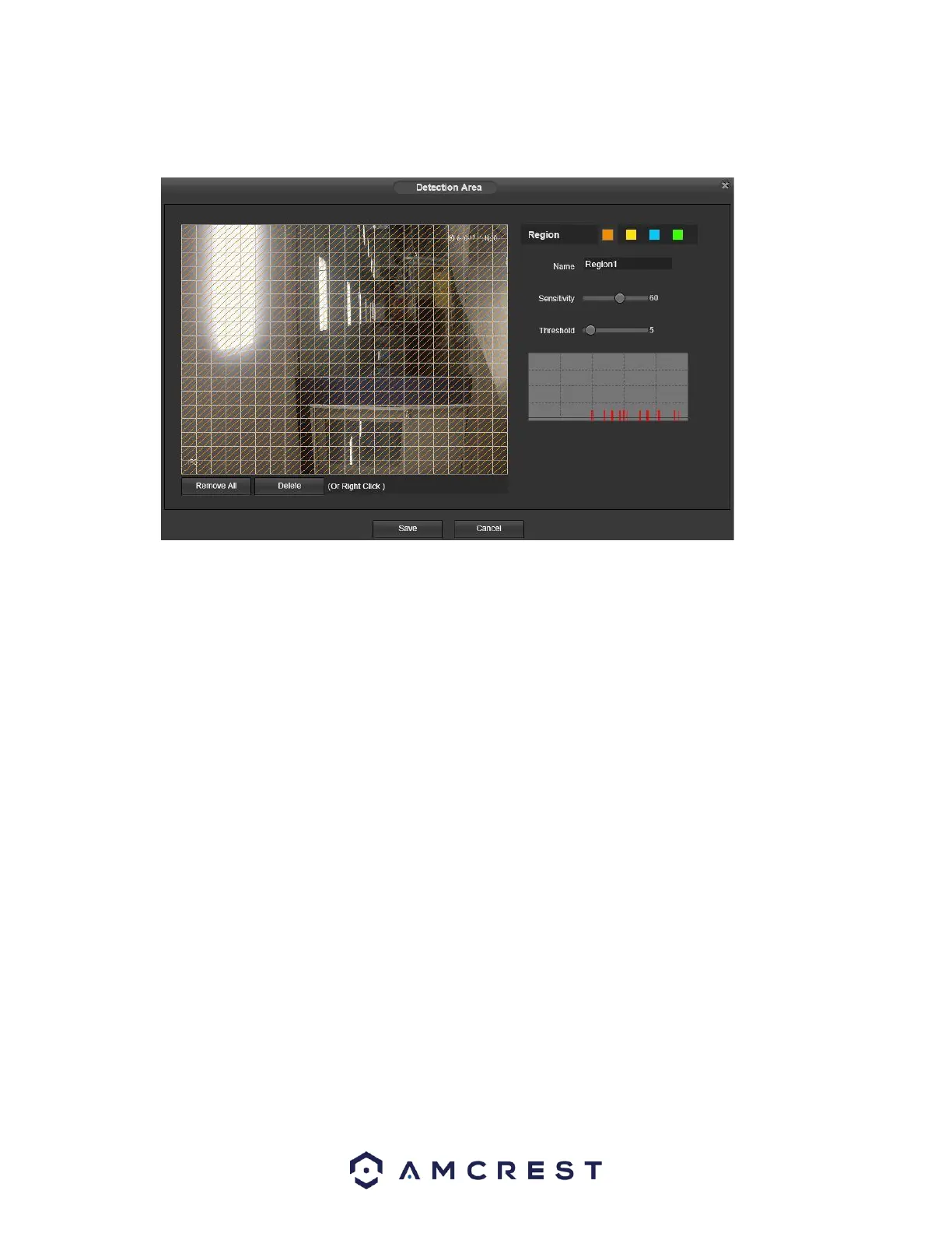 effect. Clicking the cancel button to leave the motion detection zone and will not save the zone setup.