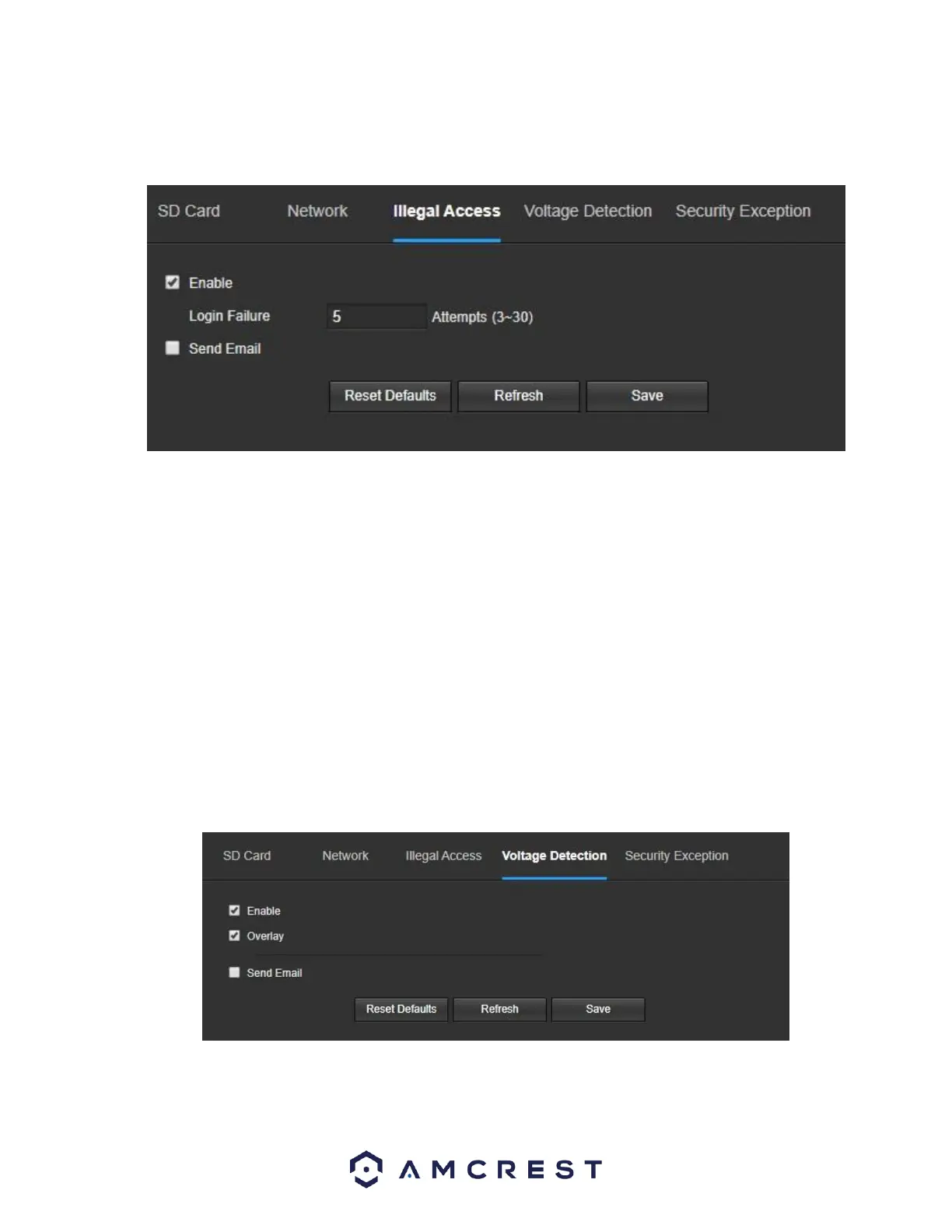 • Enable: This checkbox enables the voltage detection abnormality trigger for your camera.