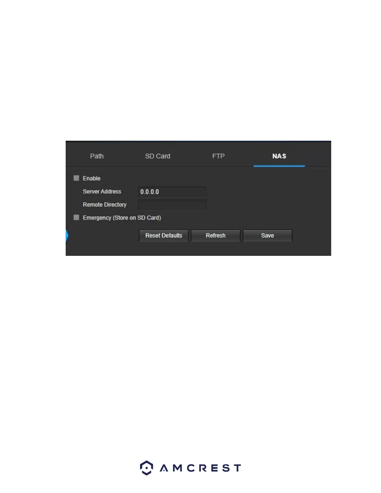 • Remote Directory: This field allows the user to specify a remote directory on the NAS to send the recorded media to.