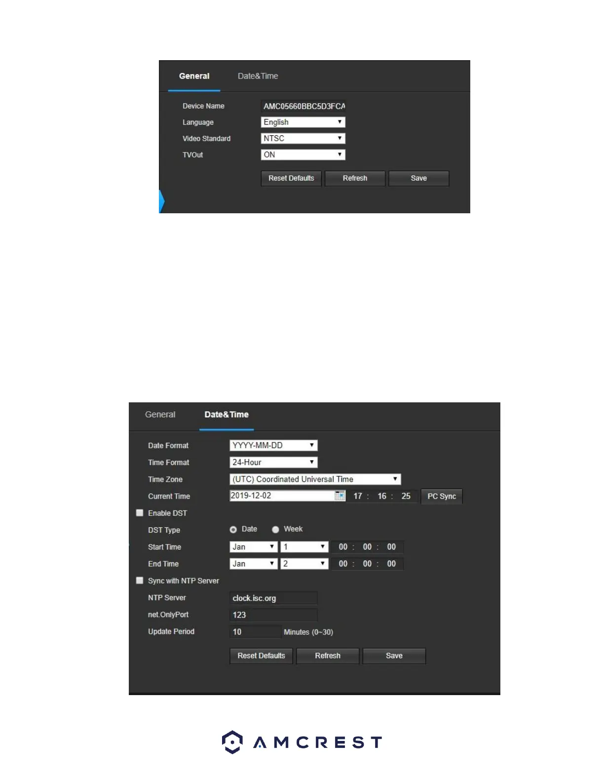 This tab is where the user can configure the date and time settings for the camera. Below is a screenshot of the Date & Time tab: