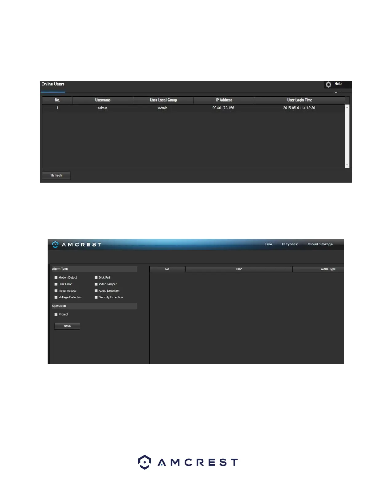 This screen allows the user to see which users are online. Below is a screenshot of the Online Users screen: