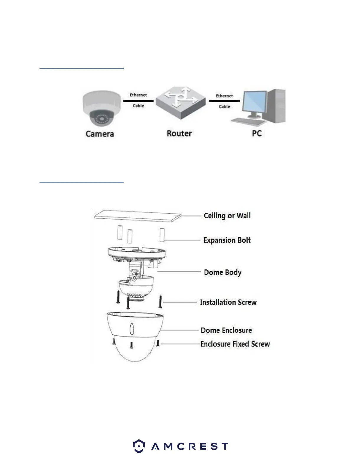 To install the camera on a ceiling or wall, please reference the below diagram as well as the steps: