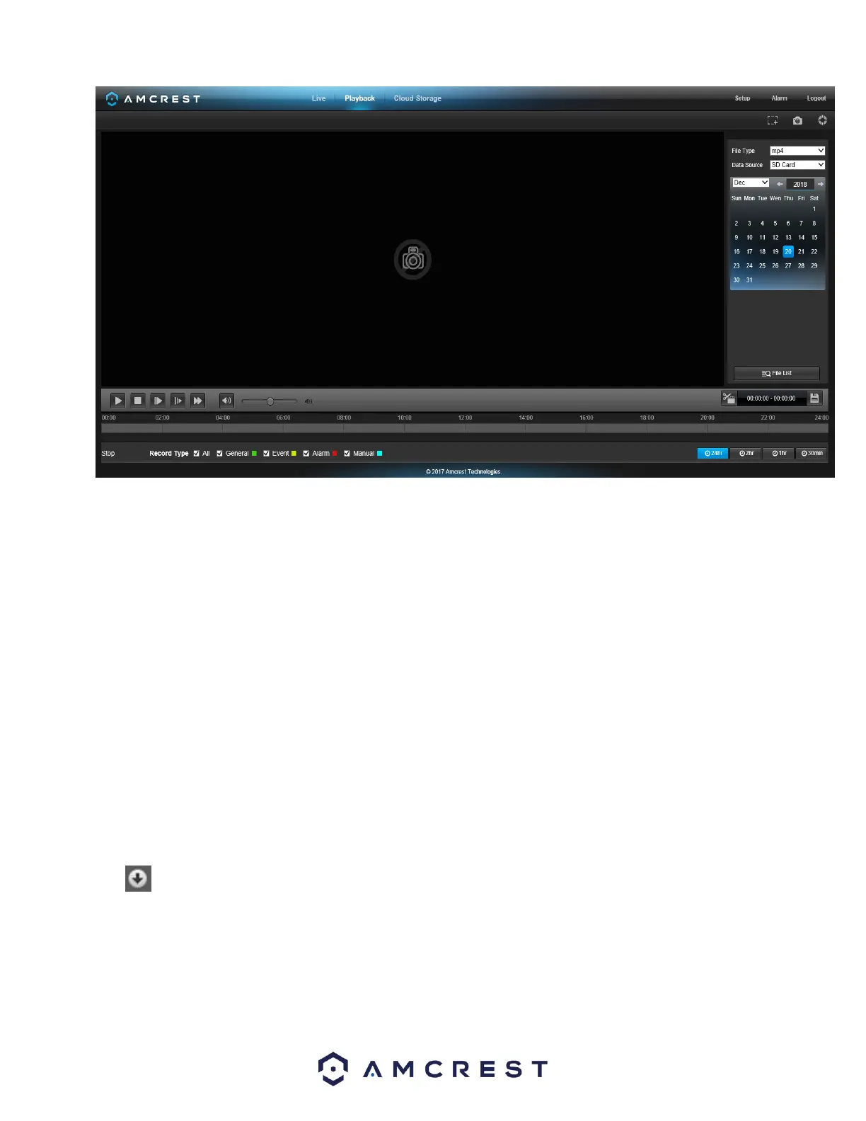 3. Calendar: This panel allows the user to pick a date that they would like to playback video from. When a date has