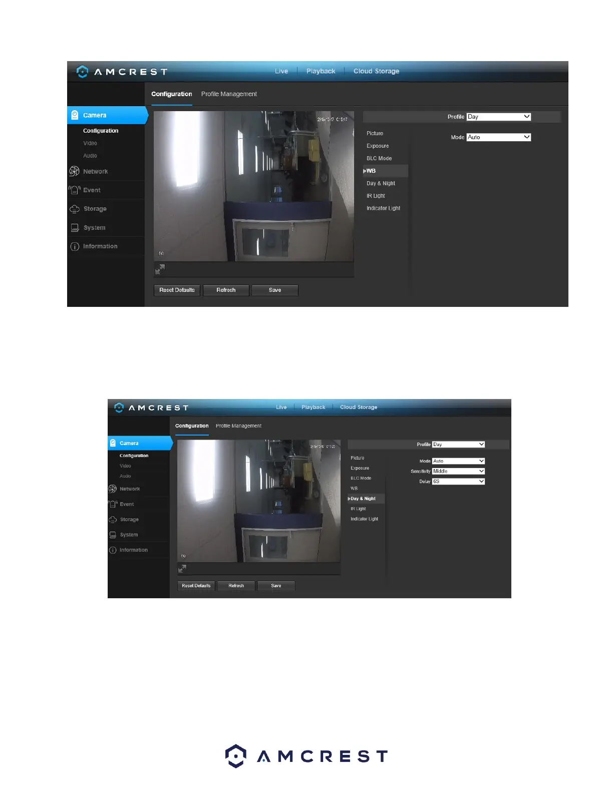 • Auto - Uses D&N Sensitivity setting to change between color mode and infrared and black and white mode.