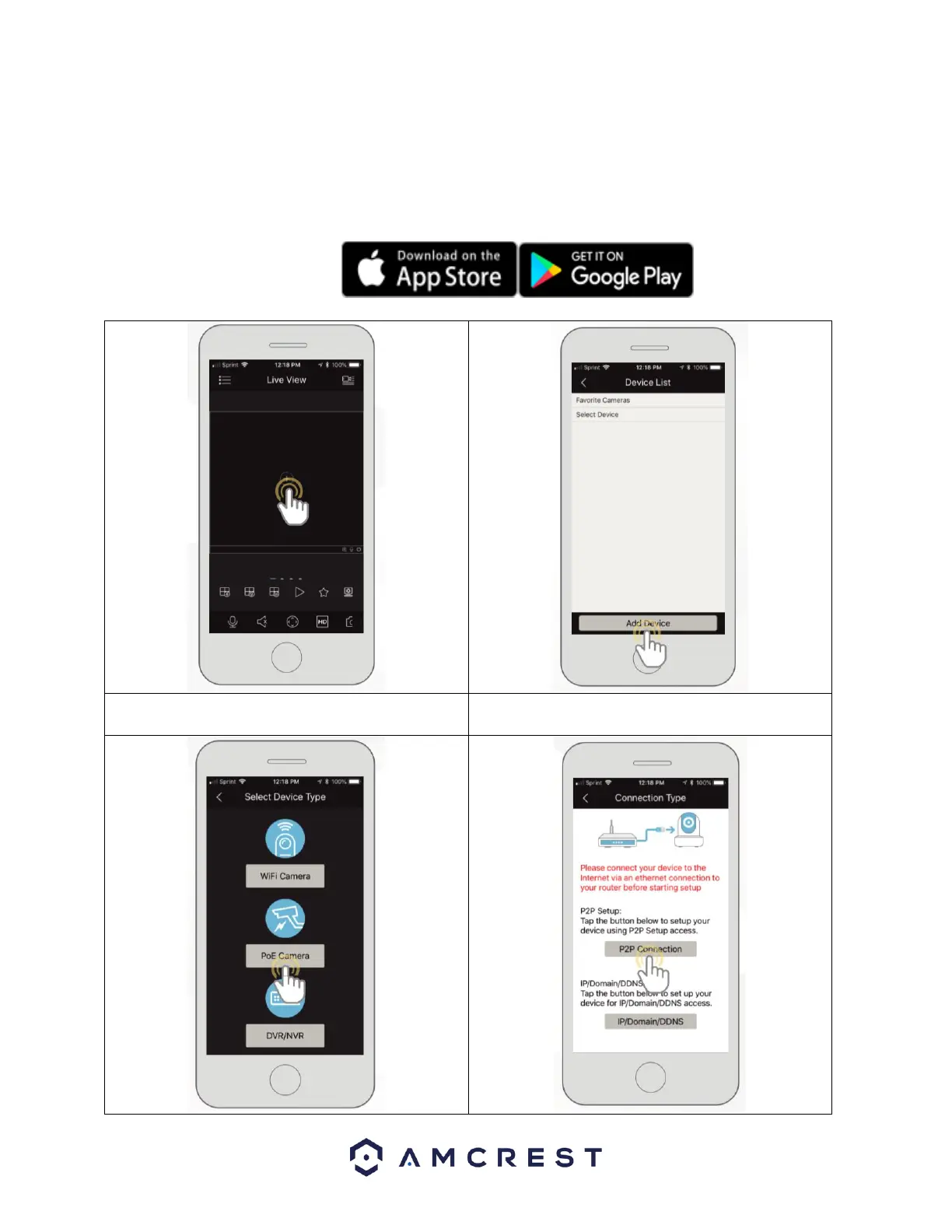 To add your PoE camera to the Amcrest View Pro app follow these steps: