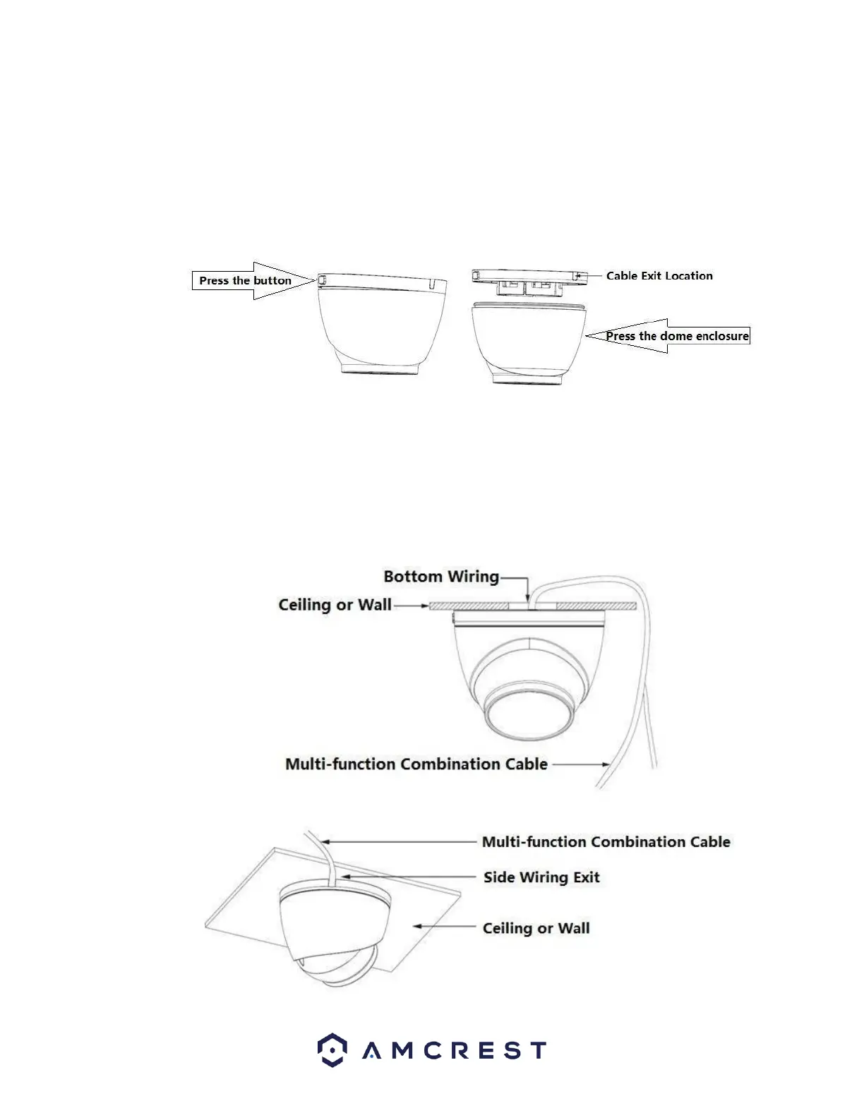Step 2 Press the dome enclosure down the cable exit to separate the pedestal and the dome enclosure and disassemble the