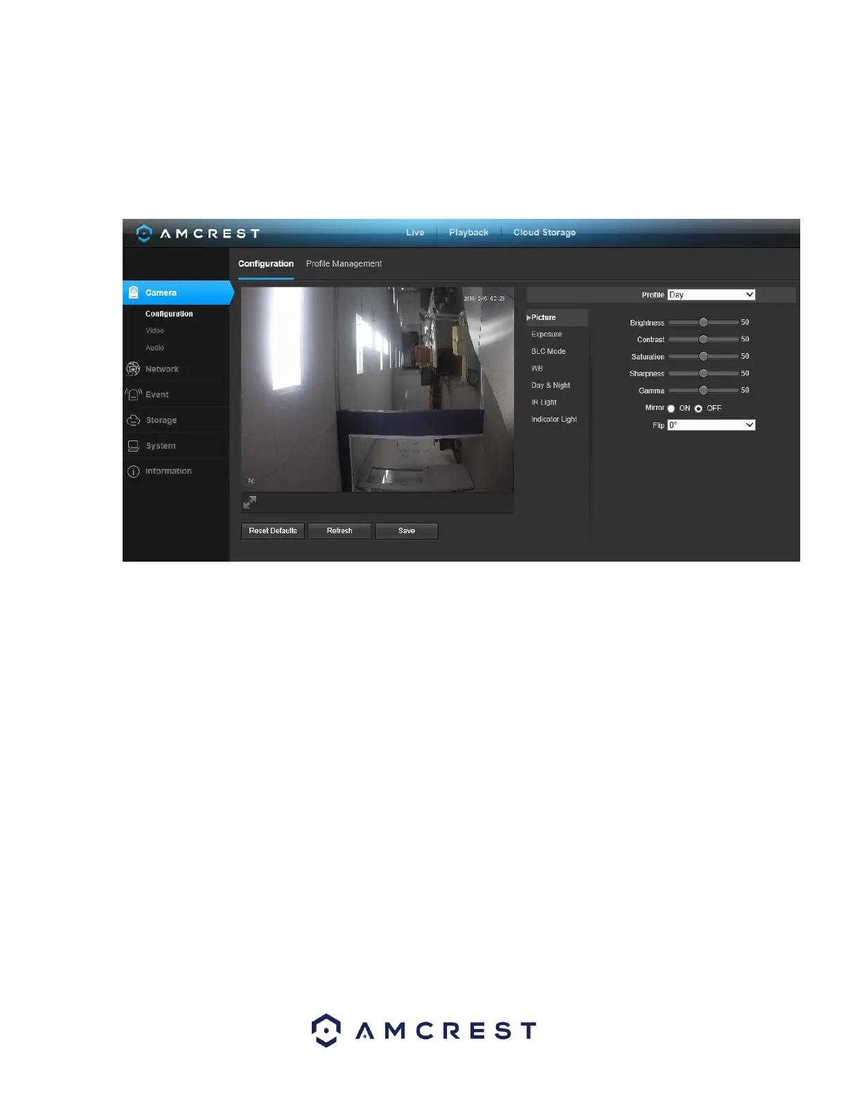 This menu allows the user to configure image profiles for normal, day, and night usage. Below is a screenshot that shows the