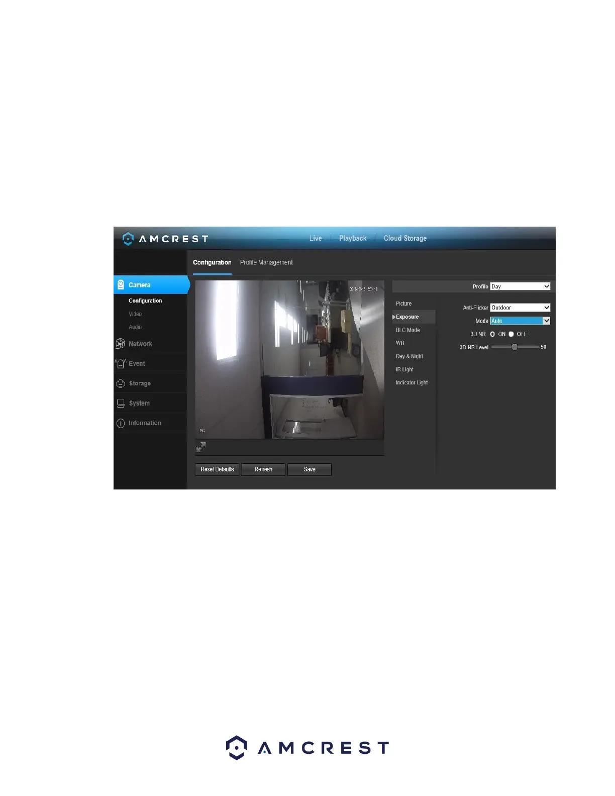 • Anti-Flicker: These radio buttons allow the user to select what type of anti-flicker technology should be used for the video feed.