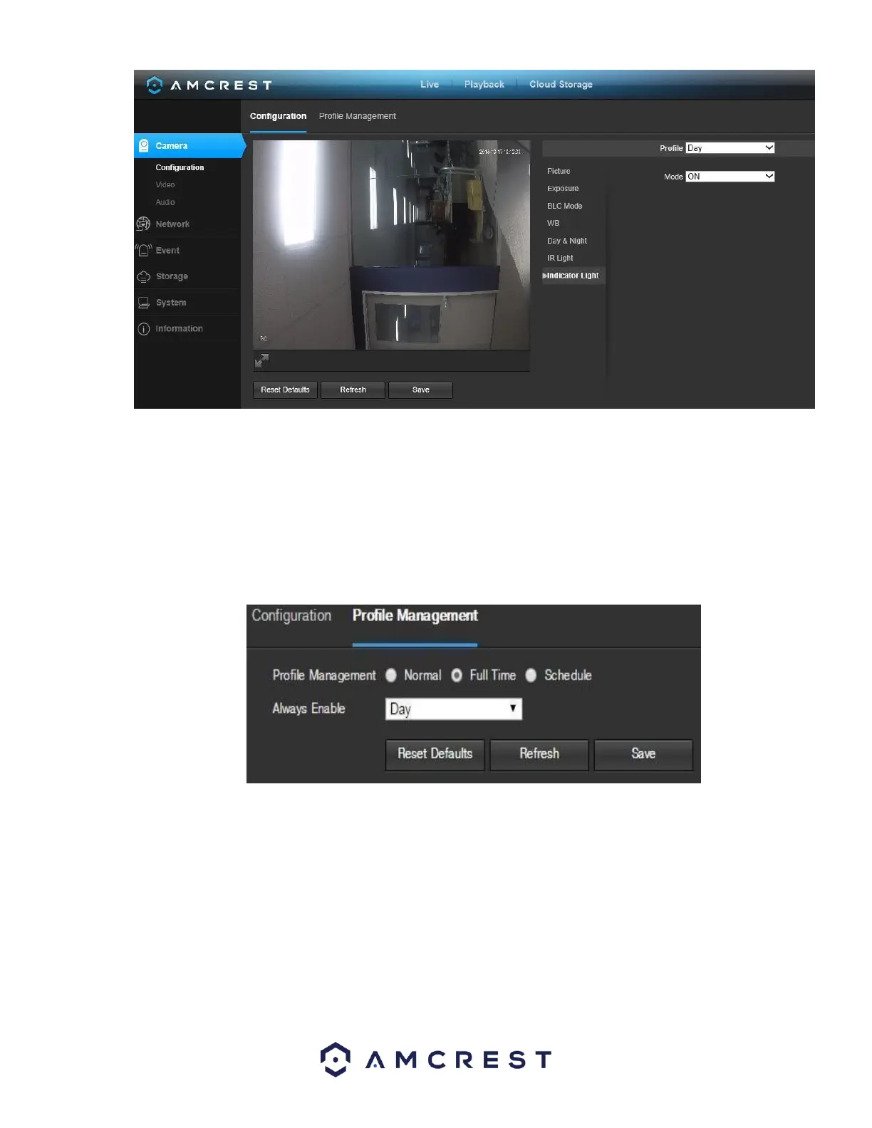 • Profile: This dropdown box allows the user to select which profile to modify. The 3 options are Day, Night, and Normal.