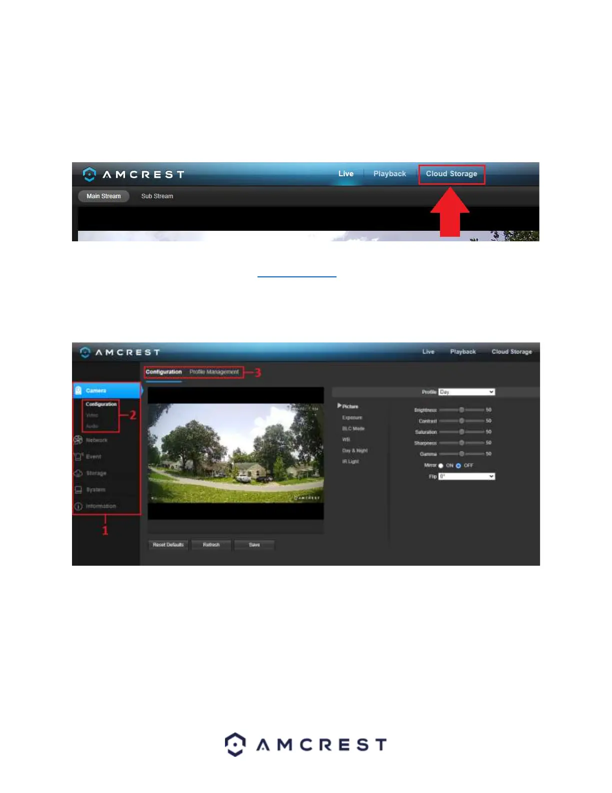 The Cloud Storage tab allows the user quick access to the Amcrest Cloud website.