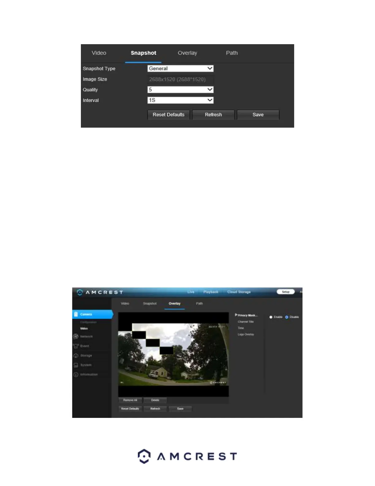 • Interval: This is to set snapshot frequency. The value ranges from 1 to 7 seconds. The maximum setting for a