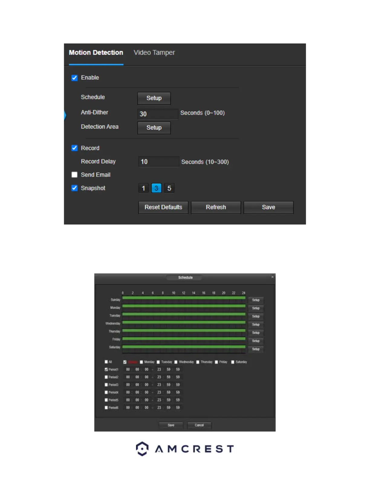 Schedule: Clicking this button opens a weekly schedule that can be used to set times.
