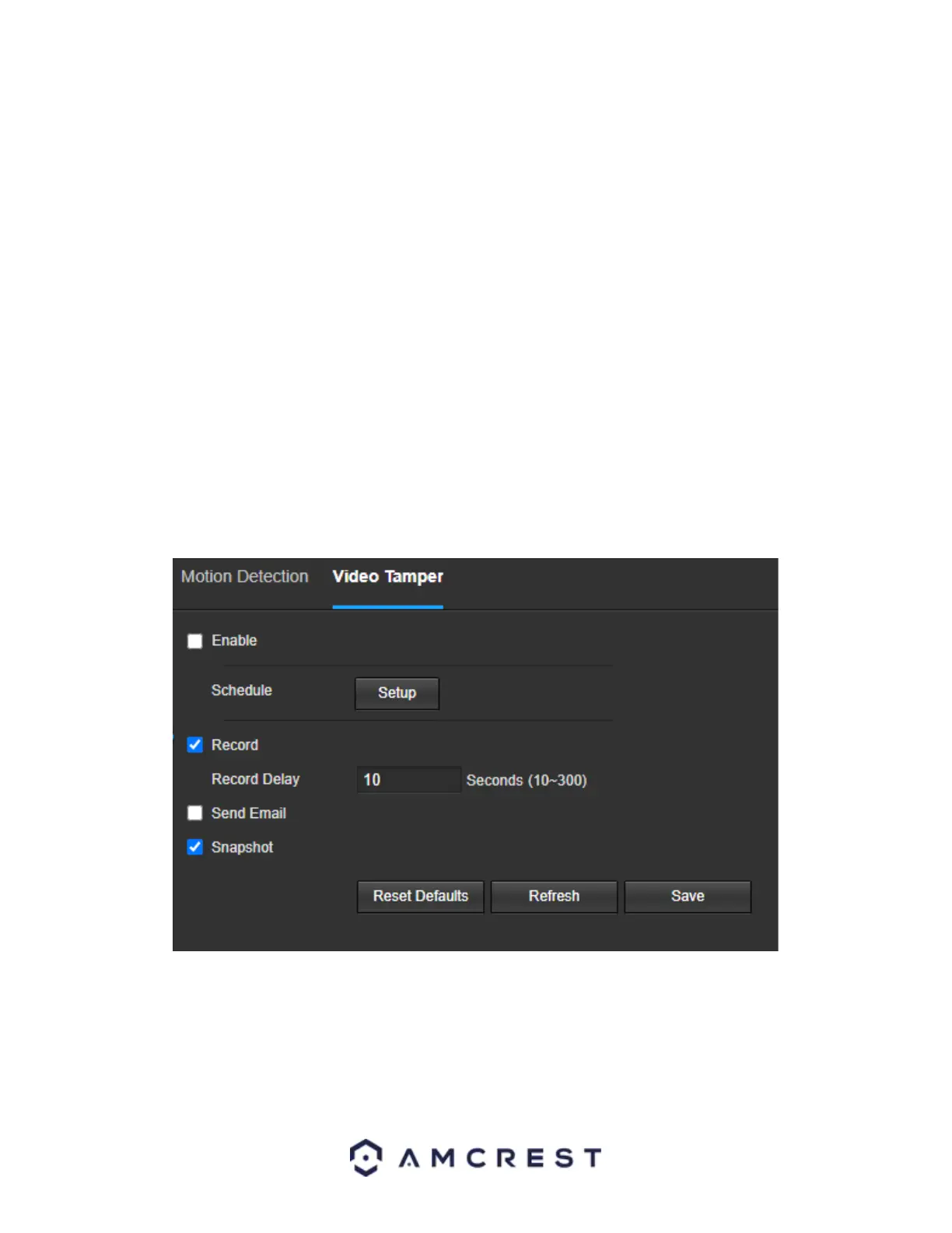 • Enable: This checkbox enables a video tamper alarm for the camera.
