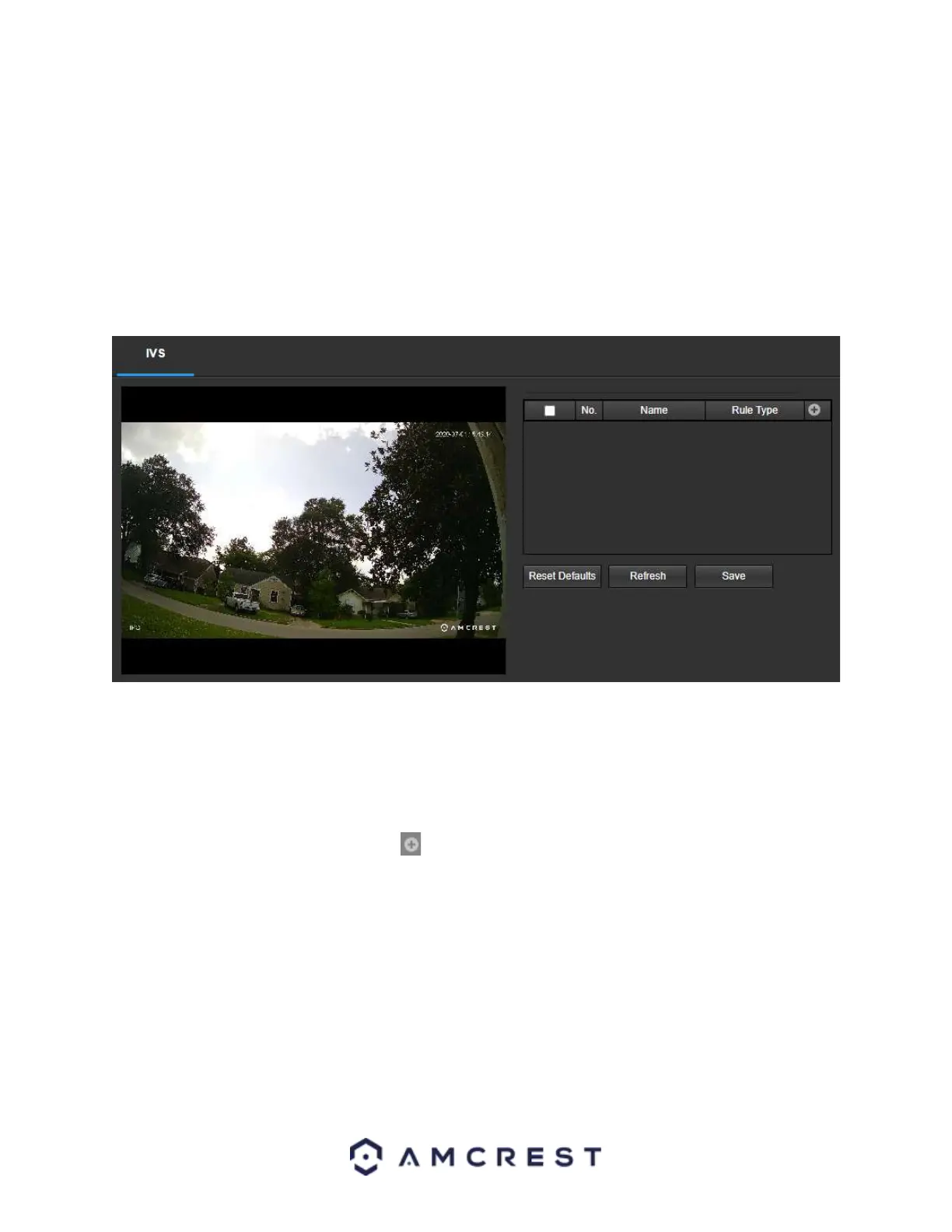 2. Access the IVS menu and click on the Add ( ) icon to begin customizing IVS rules.
