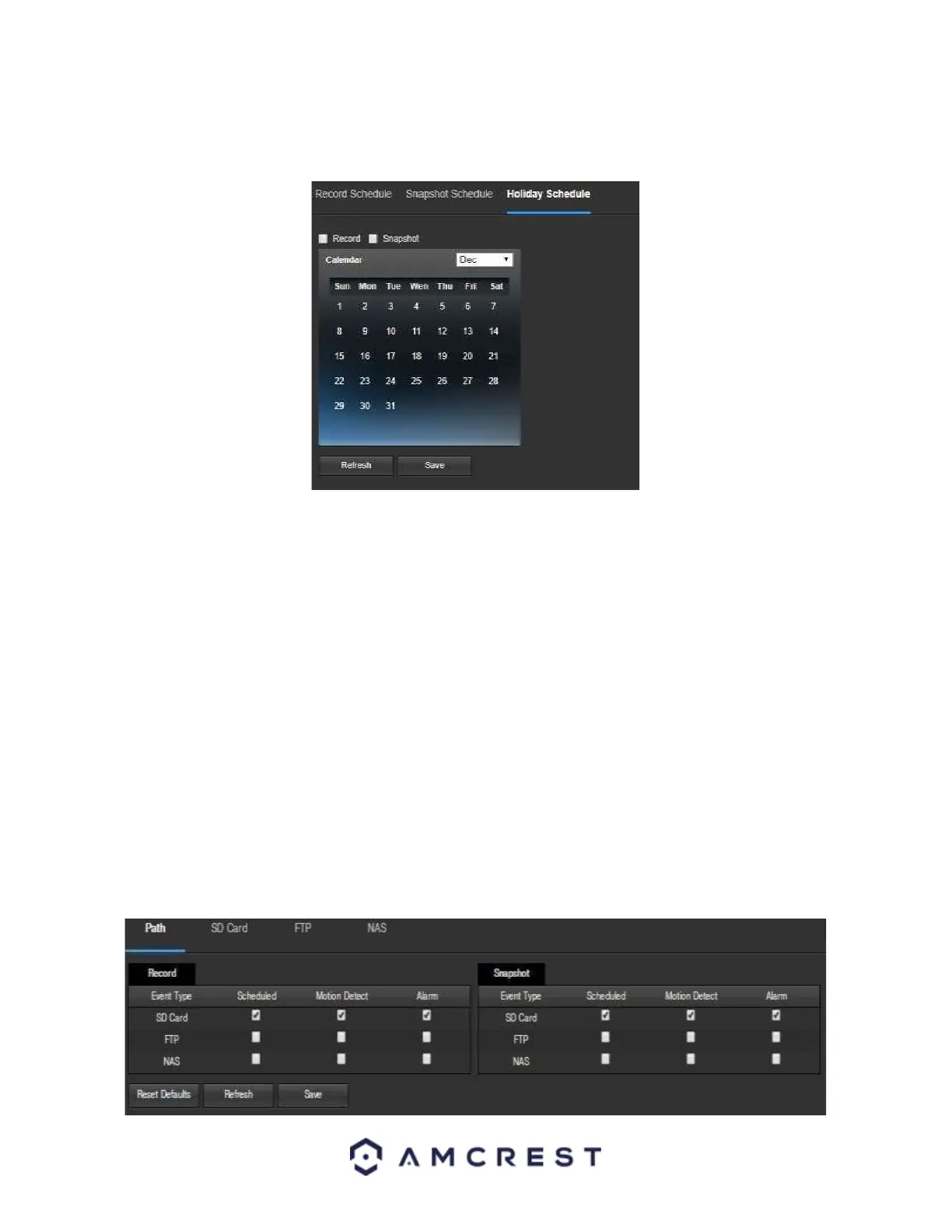 customized to stop recording or snapshots for that day by using the Record and Snapshot checkboxes.