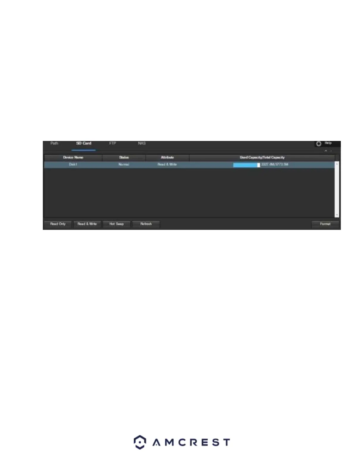 • Status: This column designates the status of the SD card.