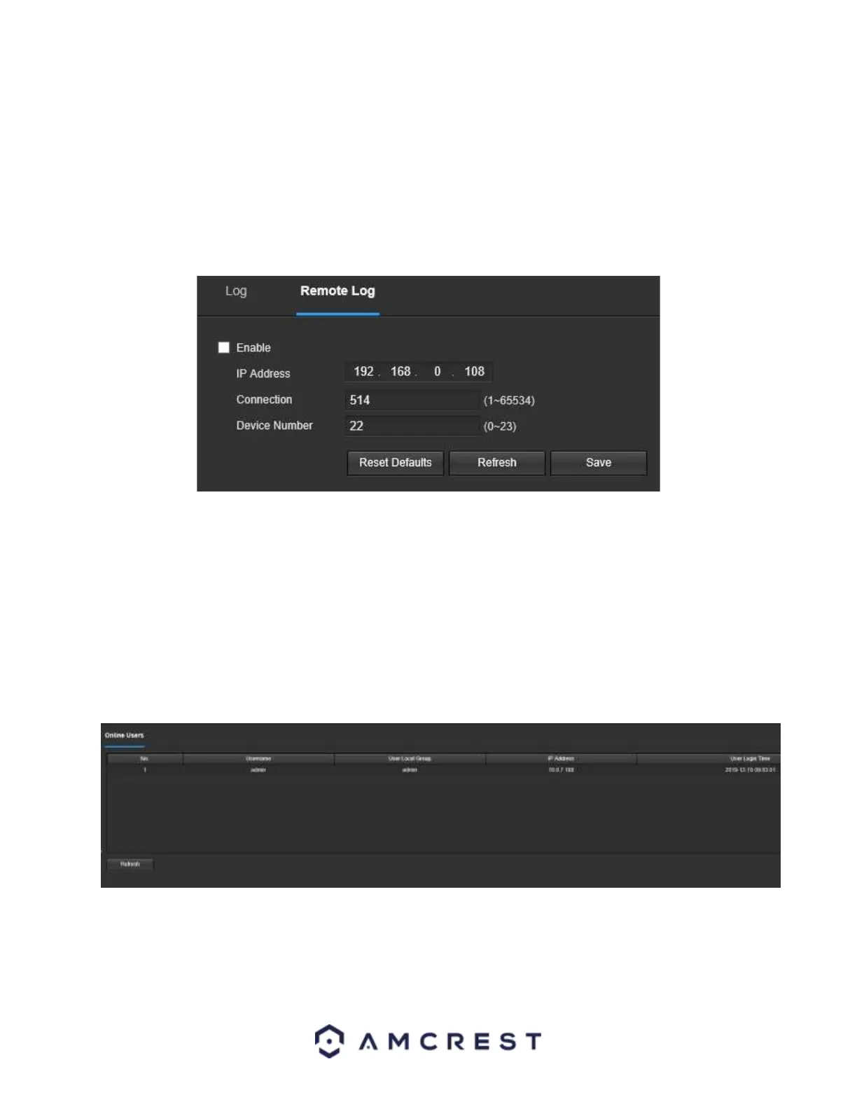 The Remote Log menu allows users to retain log information from other remotely connected devices. Below is a