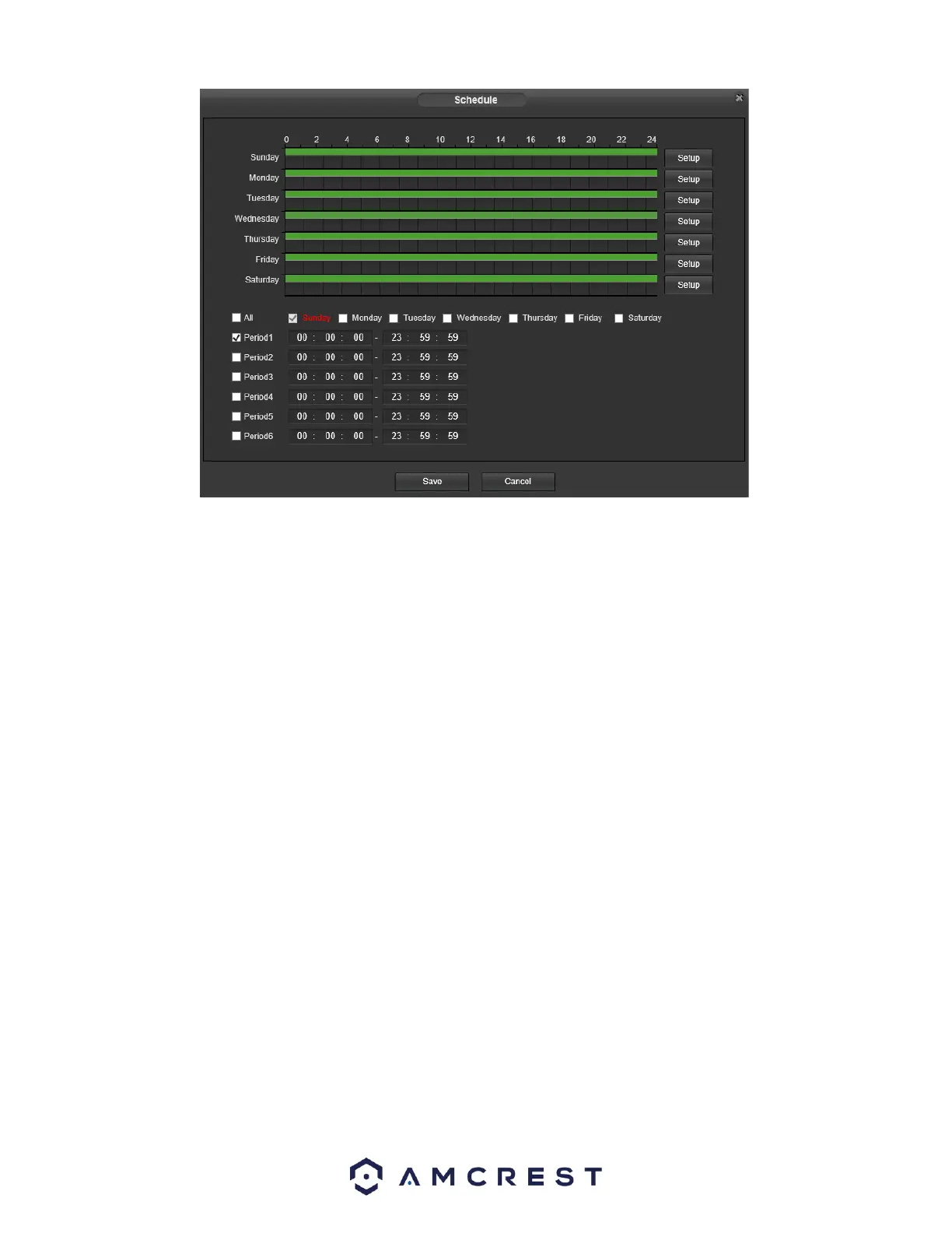 o Click and drag to set video tampering for certain days of the week. Also, periods of video tampering can