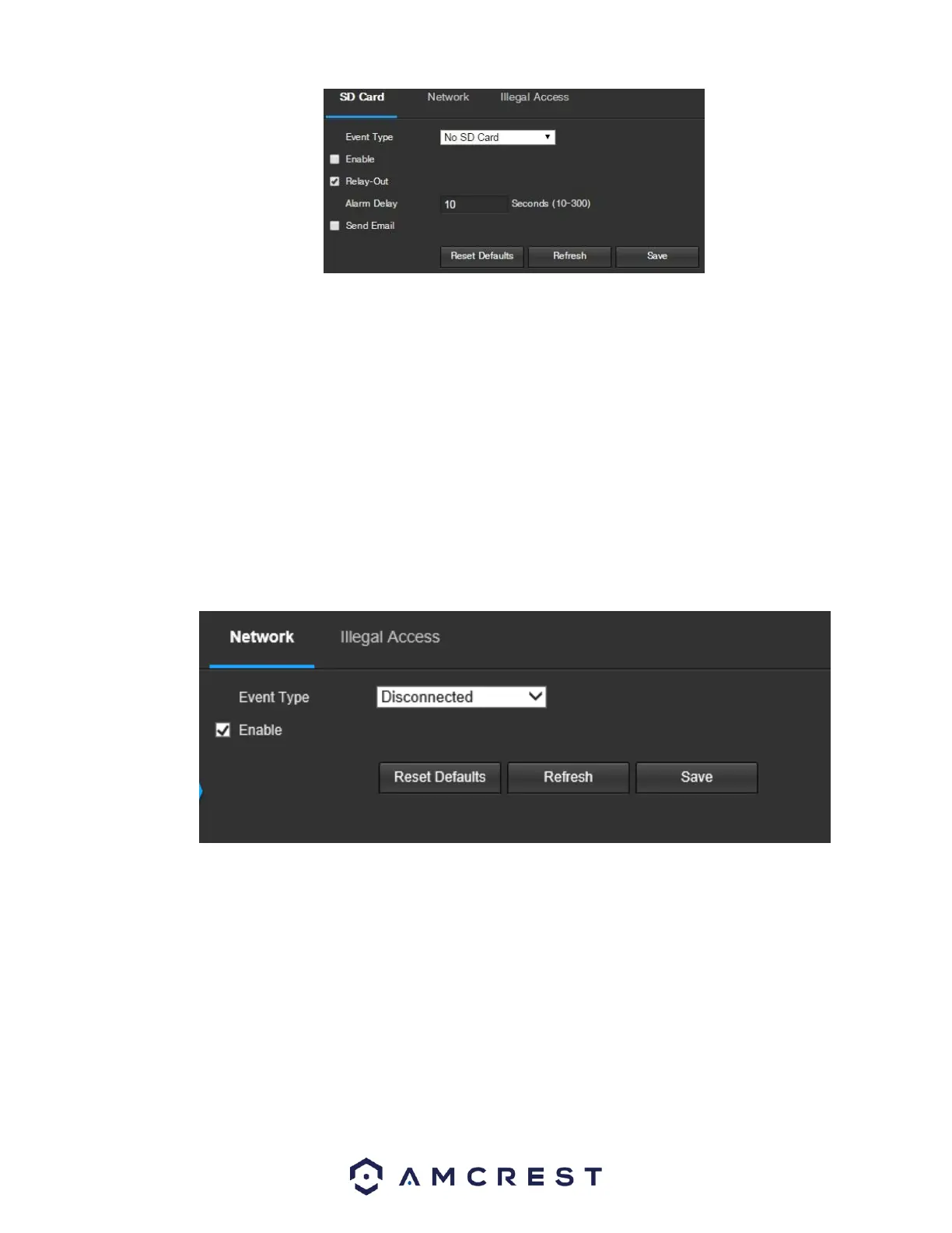 Enable: This checkbox enables the SD Card abnormality trigger for the camera.