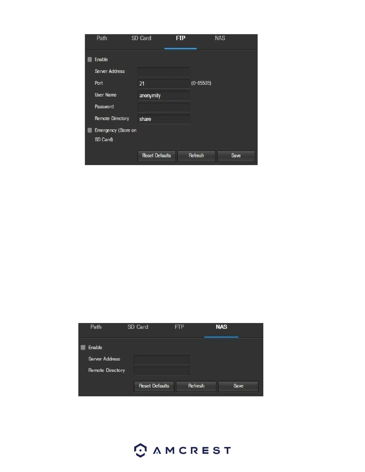 • Enable: This checkbox allows the user to enable NAS uploading for the camera’s recorded media. •