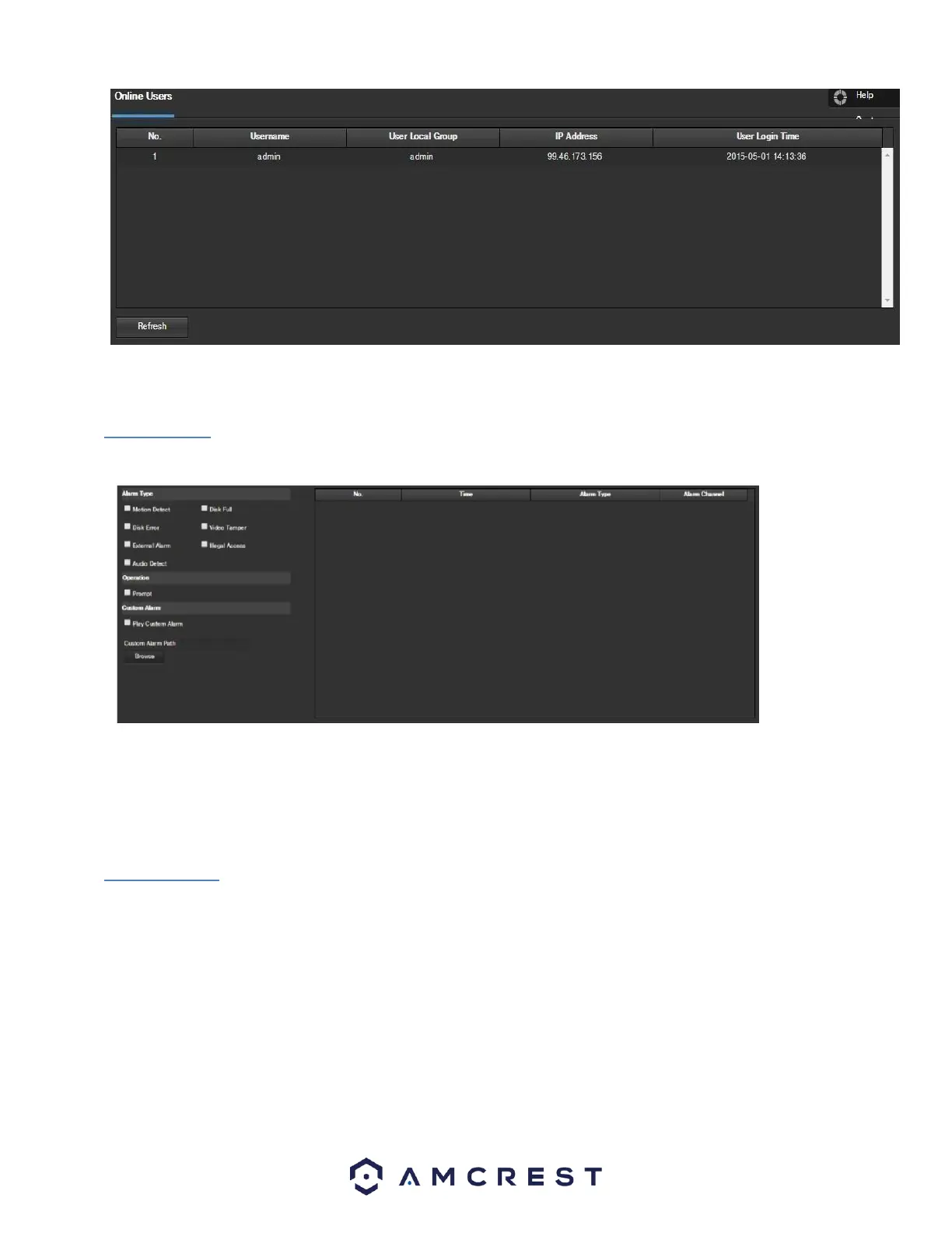 This screen is where the alarm log is kept. Below is a screenshot of the alarm screen: