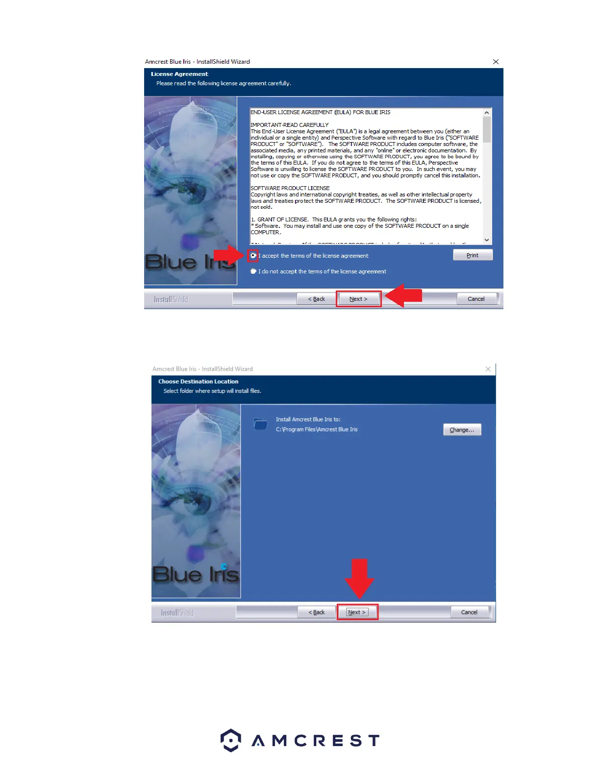 Choose a file destination in which you would like the Amcrest Blue Iris software to download. If you would like to specify another