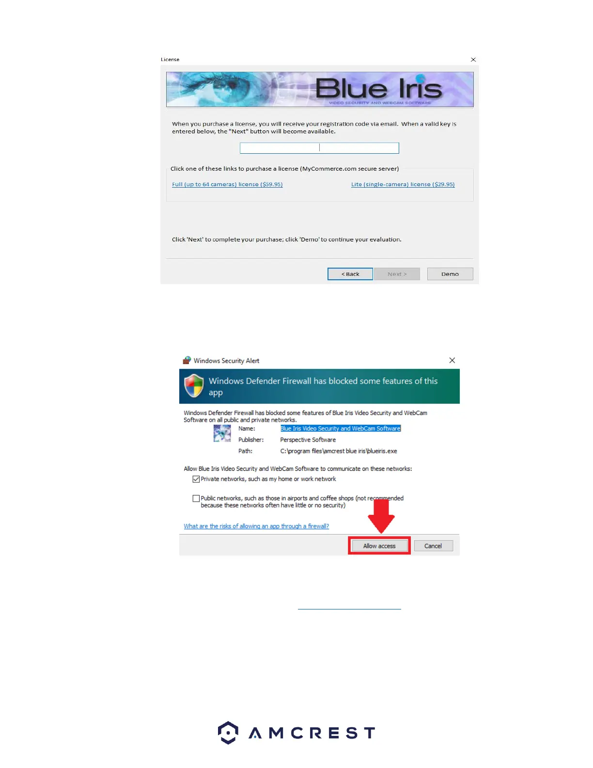 Note: When accessing the software, make sure to Allow access to all communications blocked by Windows Defender.