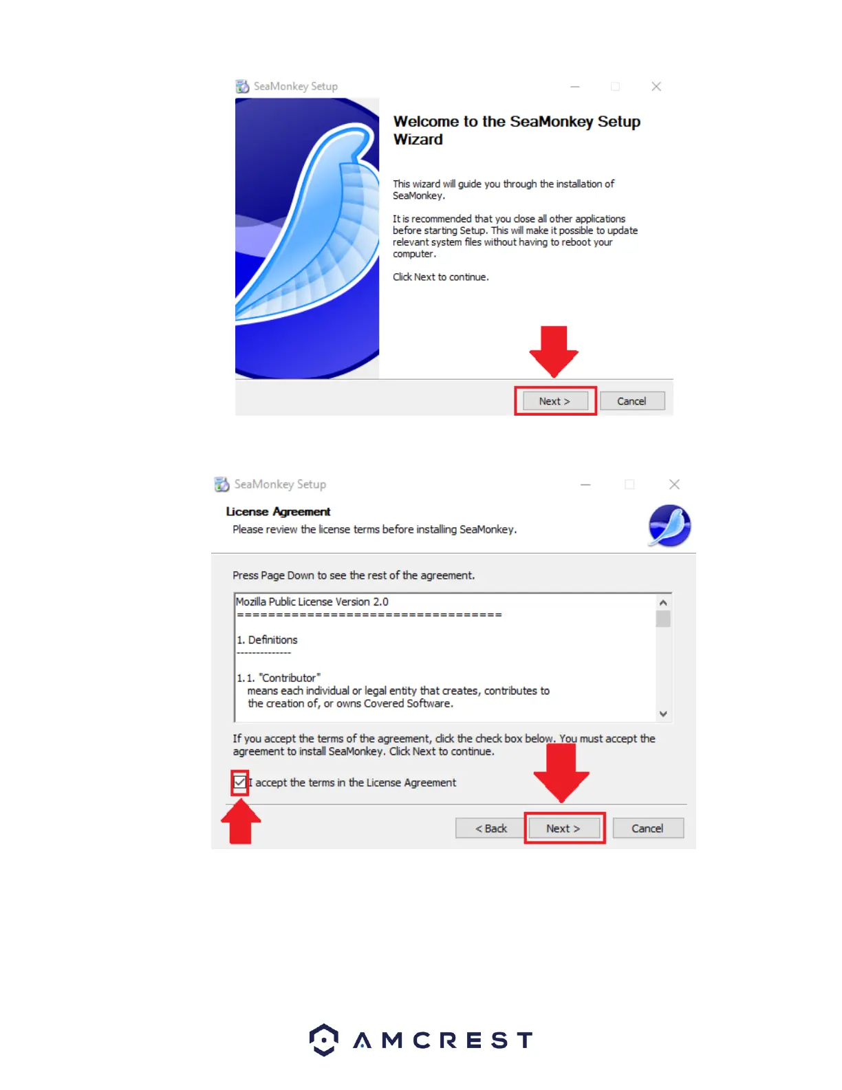 Please review the license terms before installing SeaMonkey. Read the license agreement carefully, and then to accept the terms,