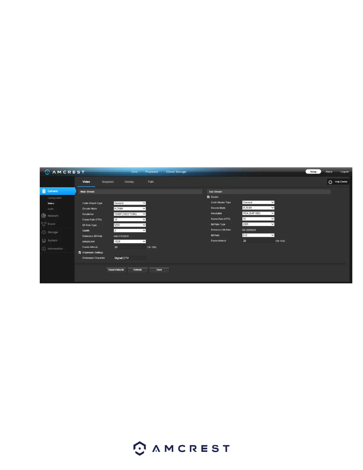 • Watermark Settings: This function allows the user to verify if the video has been tampered with.