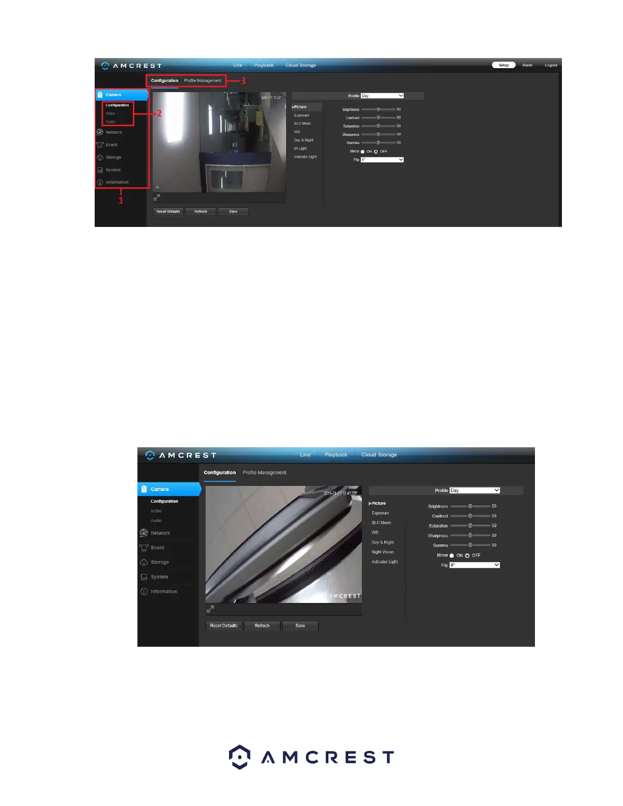 This menu allows the user to configure image profiles for normal, day, and night usage. Below is a screenshot that shows the