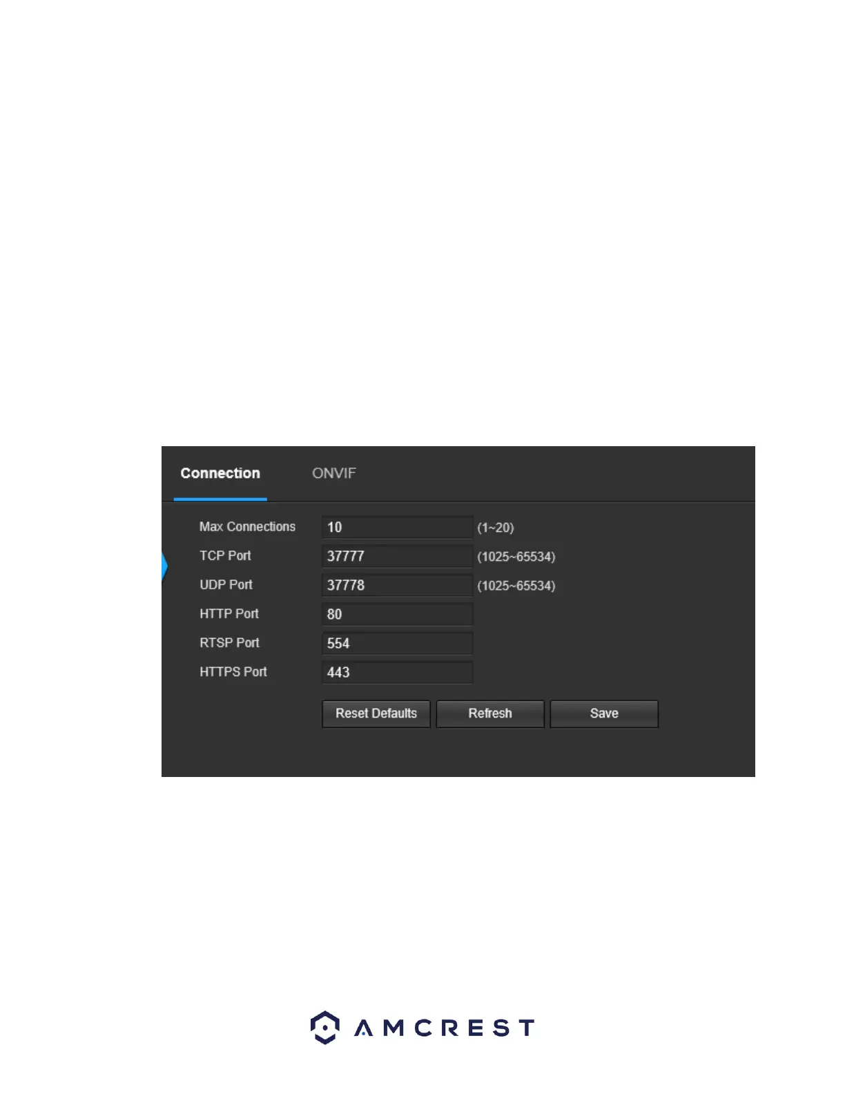 • Max Connections: This field allows the user to specify the maximum number of users that can be connected to the camera