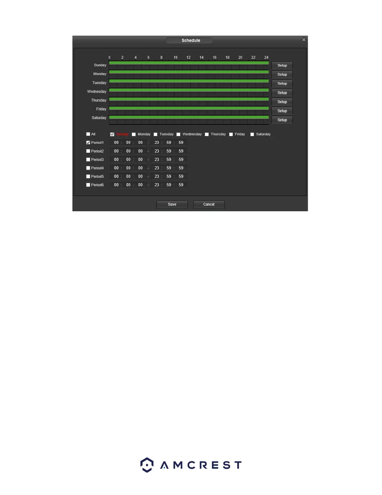 o Click and drag to set video tampering for certain days of the week. Also, periods of video tampering can