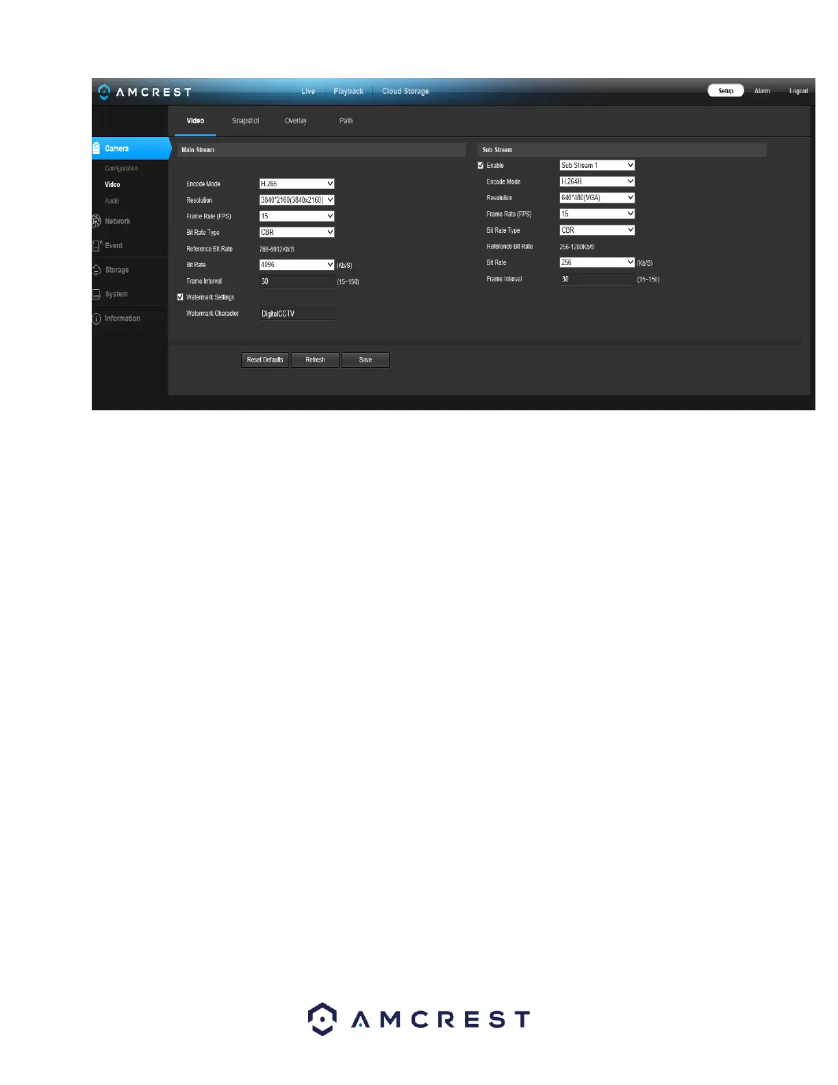 • Watermark Settings: This function allows the user to verify if the video has been tampered with.