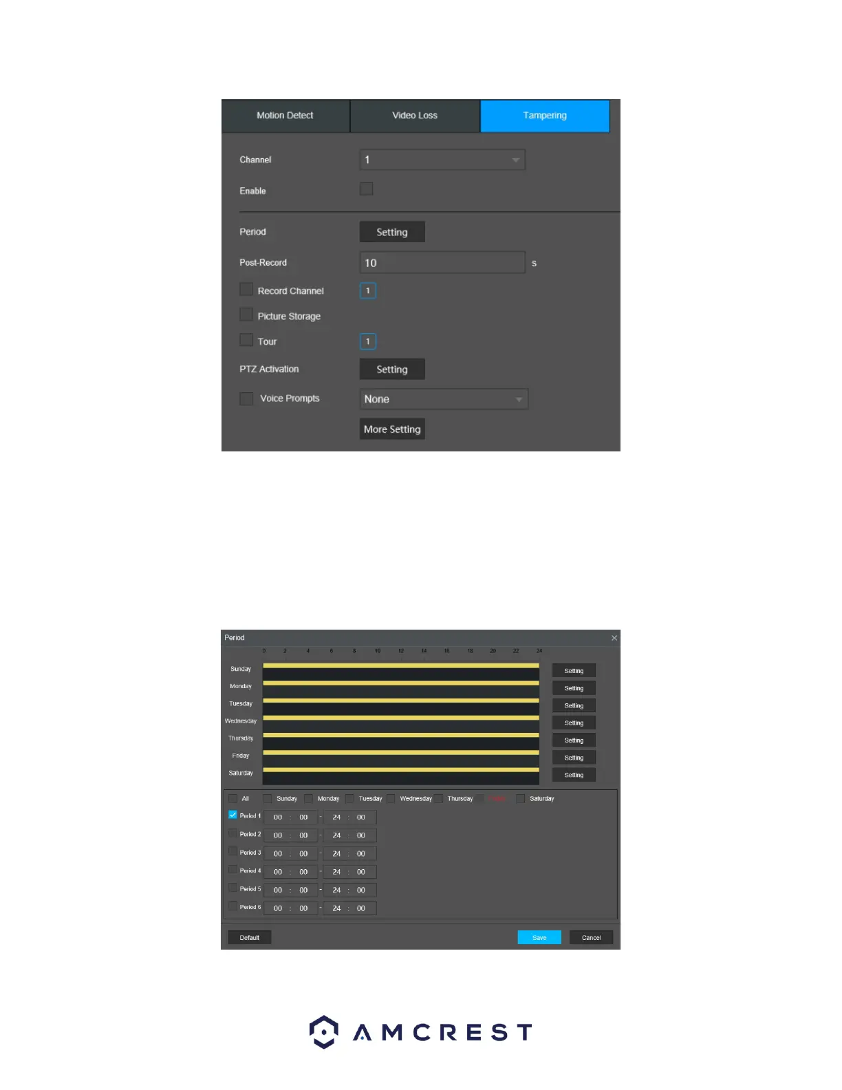 Period: This setup button takes the user to the detection period settings screen. Below is a screenshot