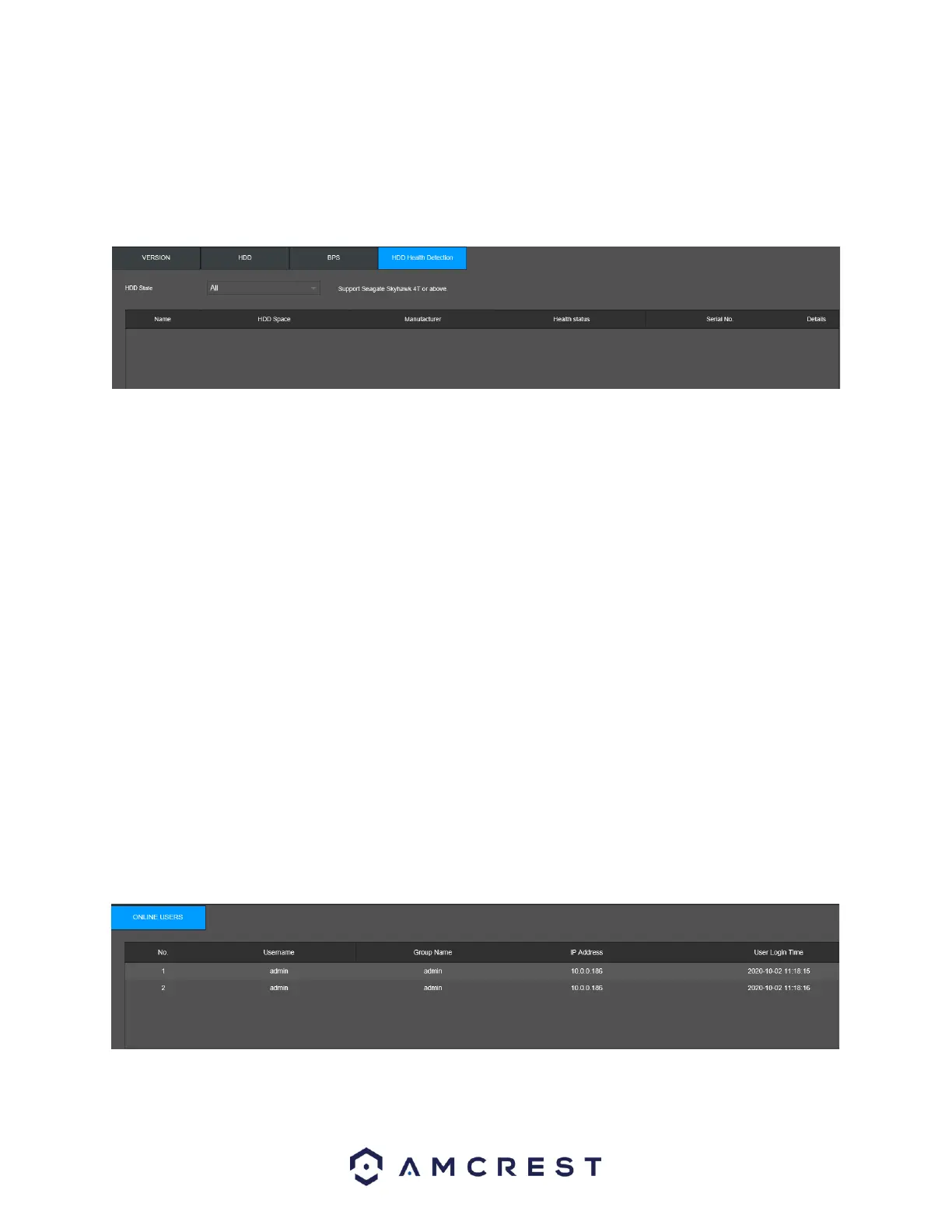 The Online Users tab allows the user to manage online users connected to your NVR.