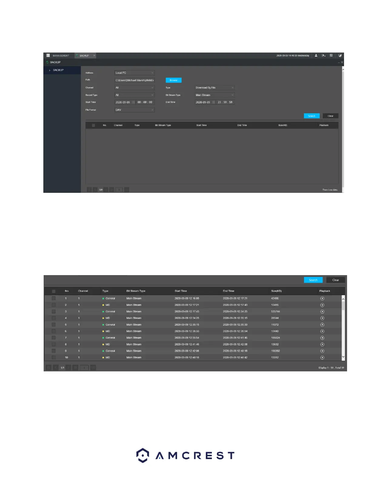 Select the event from the interface and click Back Up. The chosen files will be backed up to the file path