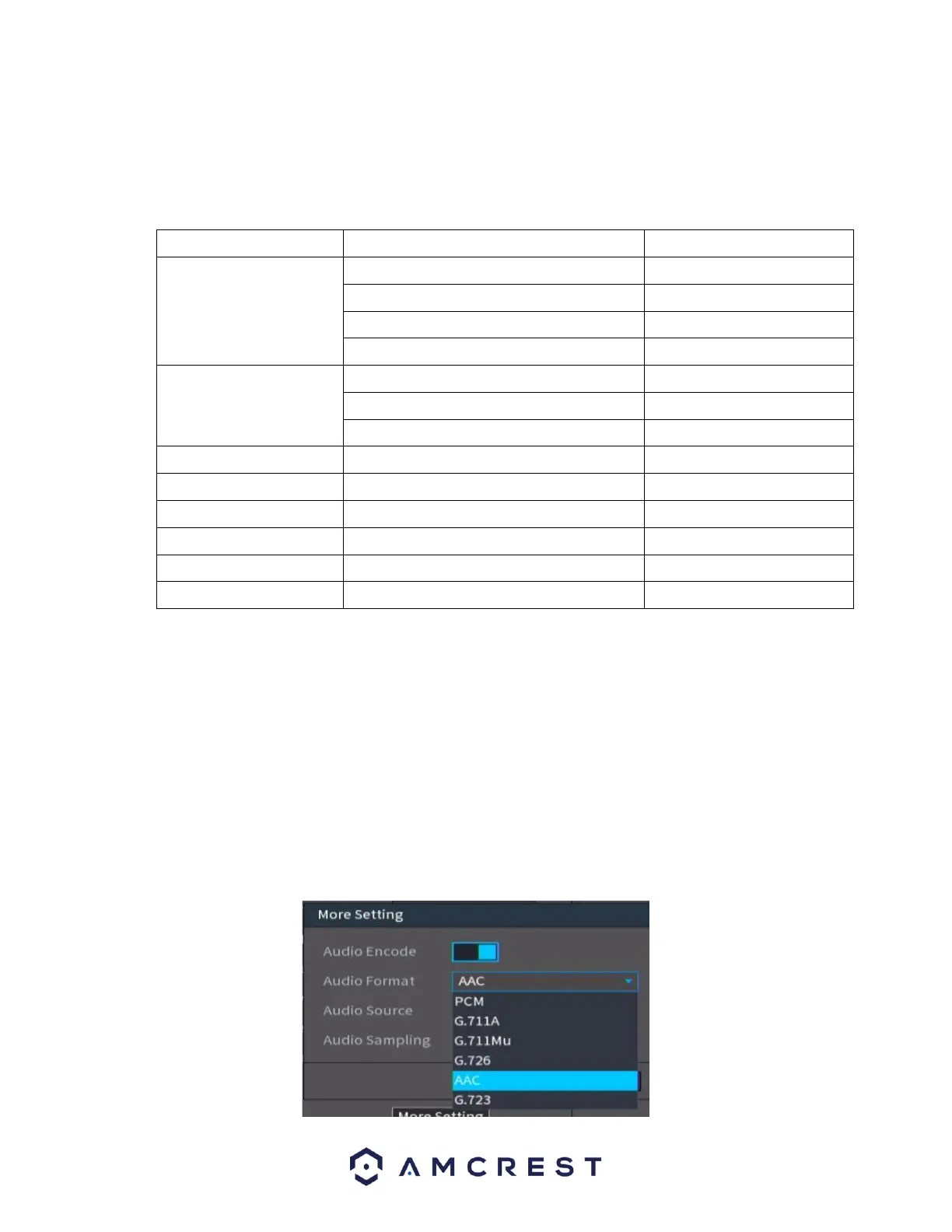 Most audio codecs will use ACC as a default audio codec. To adjust audio settings, log into your NVR and
