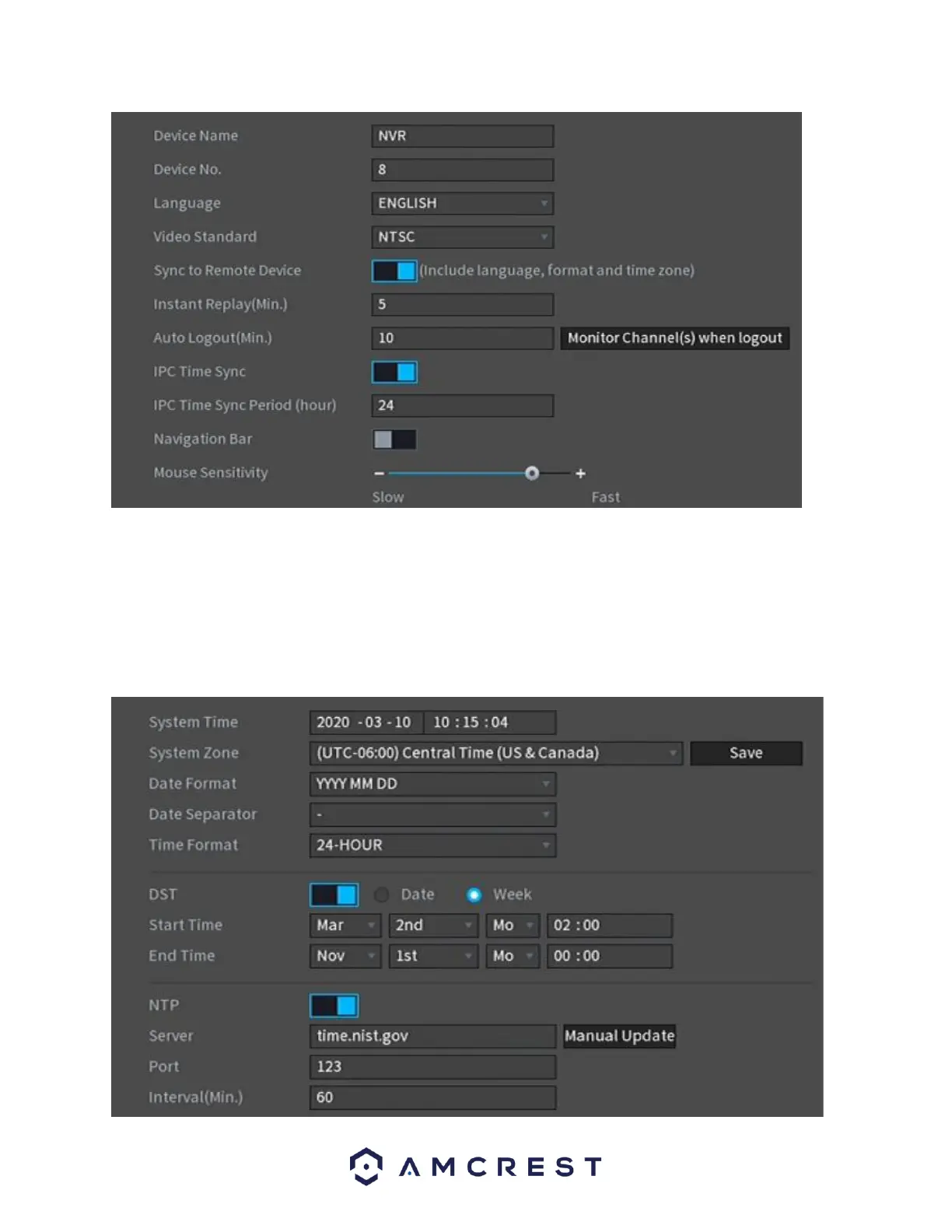 The Date & Time settings screen is used to set the date and time for your NVR. If you want to